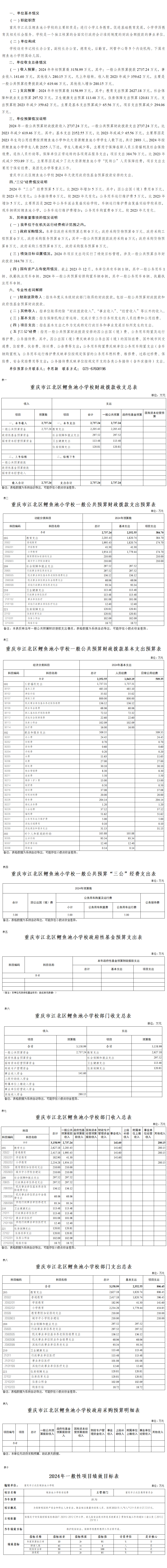 重慶市江北區(qū)鯉魚池小學(xué)校2024年單位預(yù)算情況說明