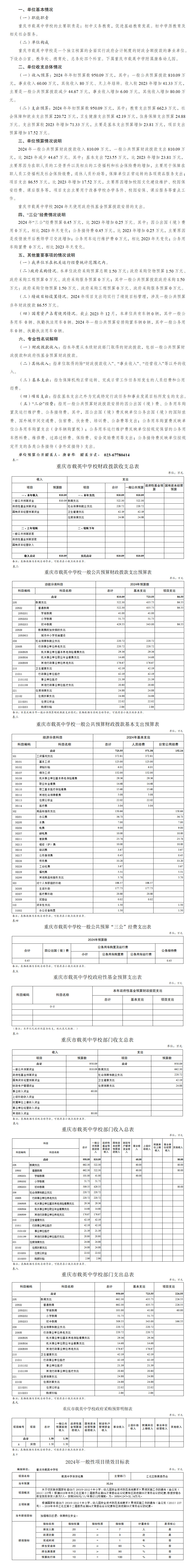 重慶市載英中學校2024年單位預算情況說明