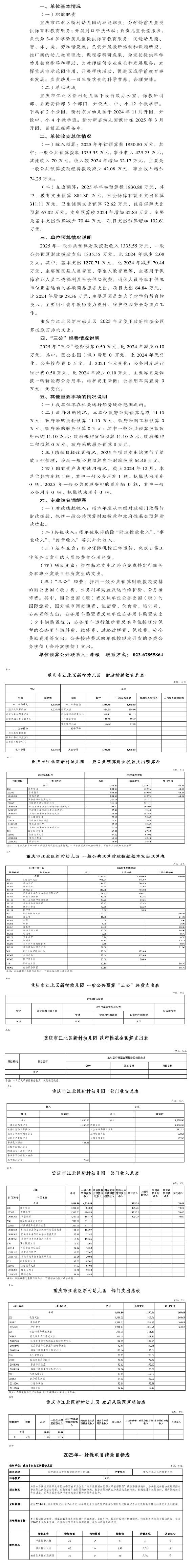 重慶市江北區新村幼兒園2025年單位預算情況說明