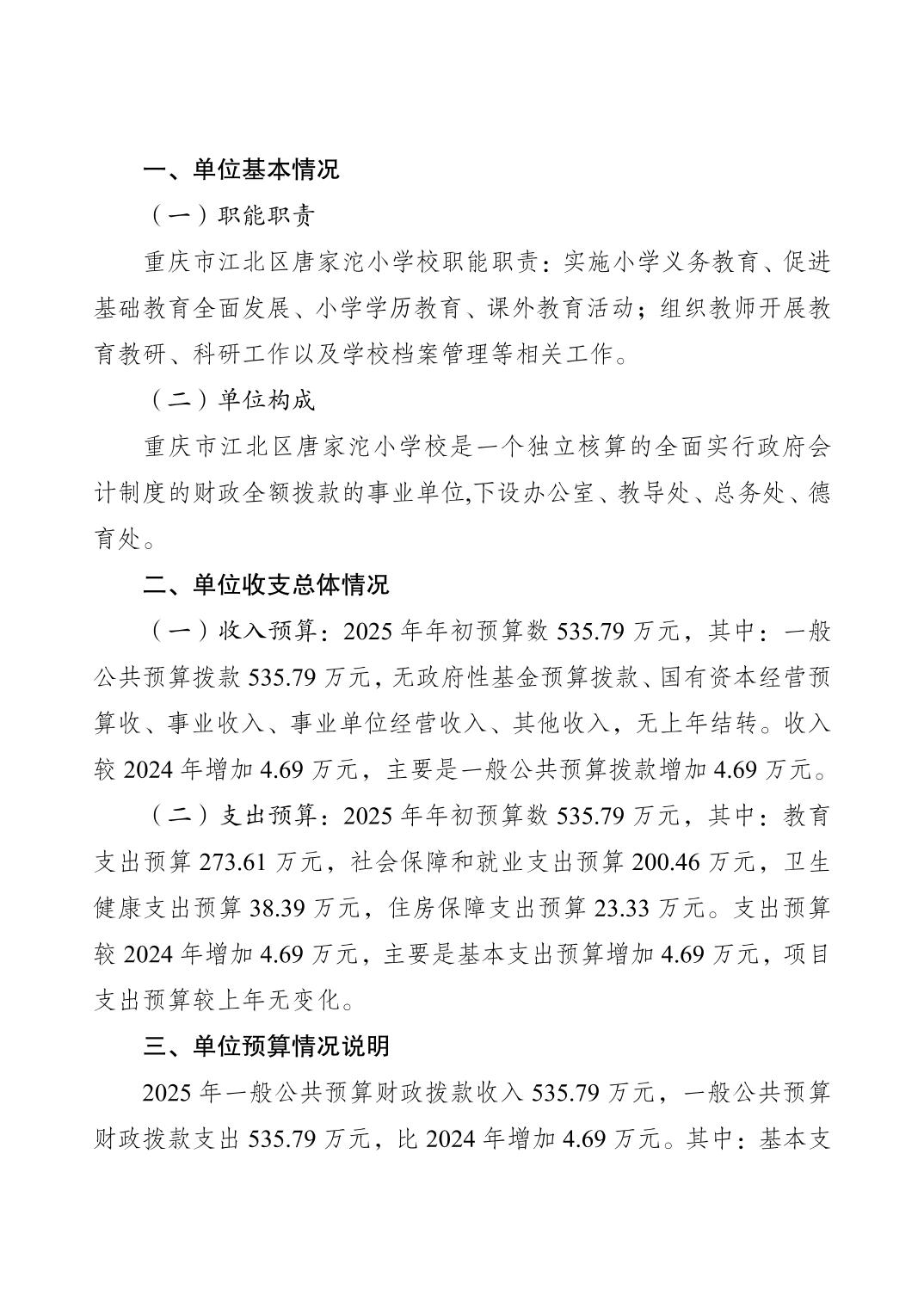 重慶市江北區唐家沱小學校2025年單位預算情況說明