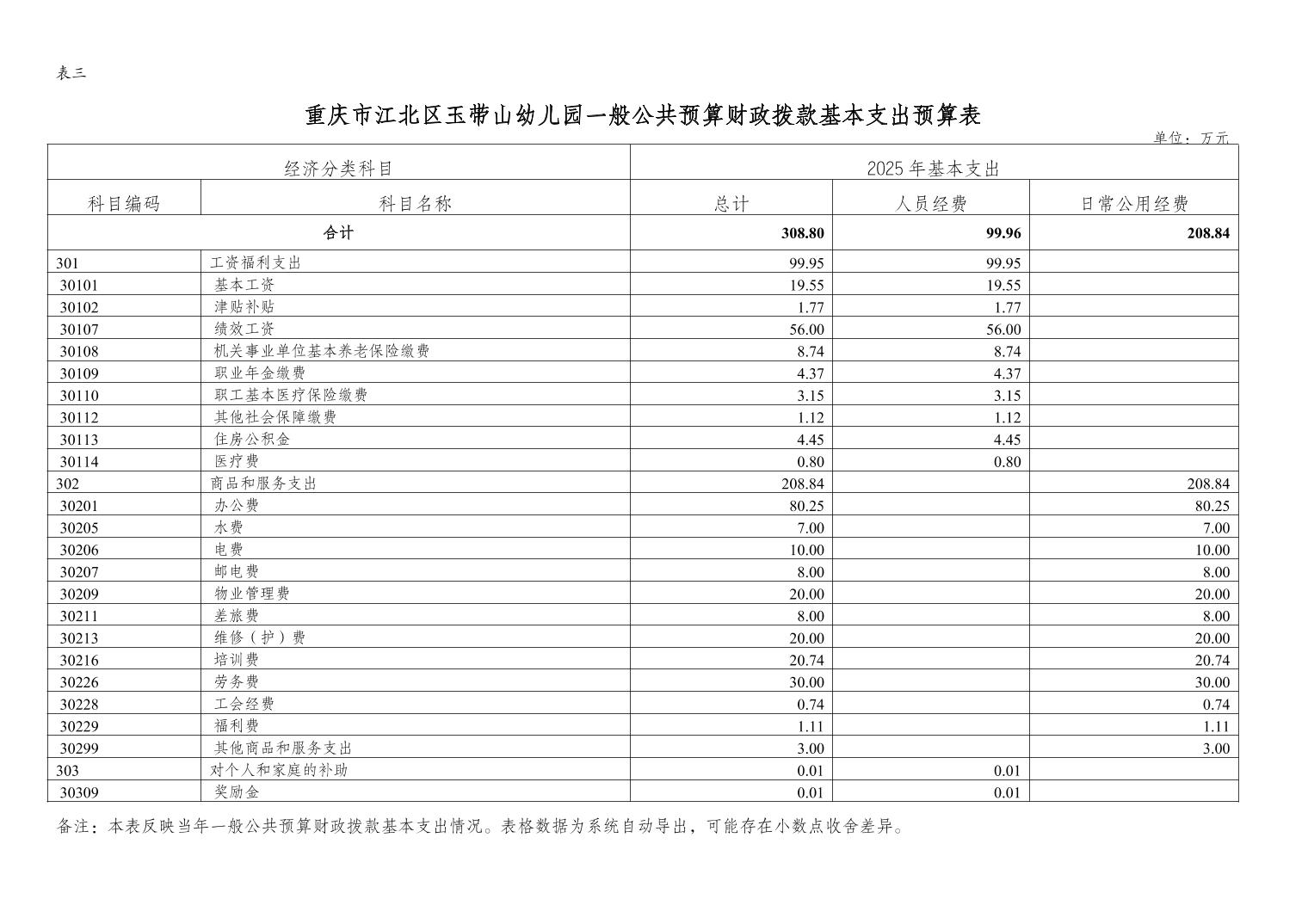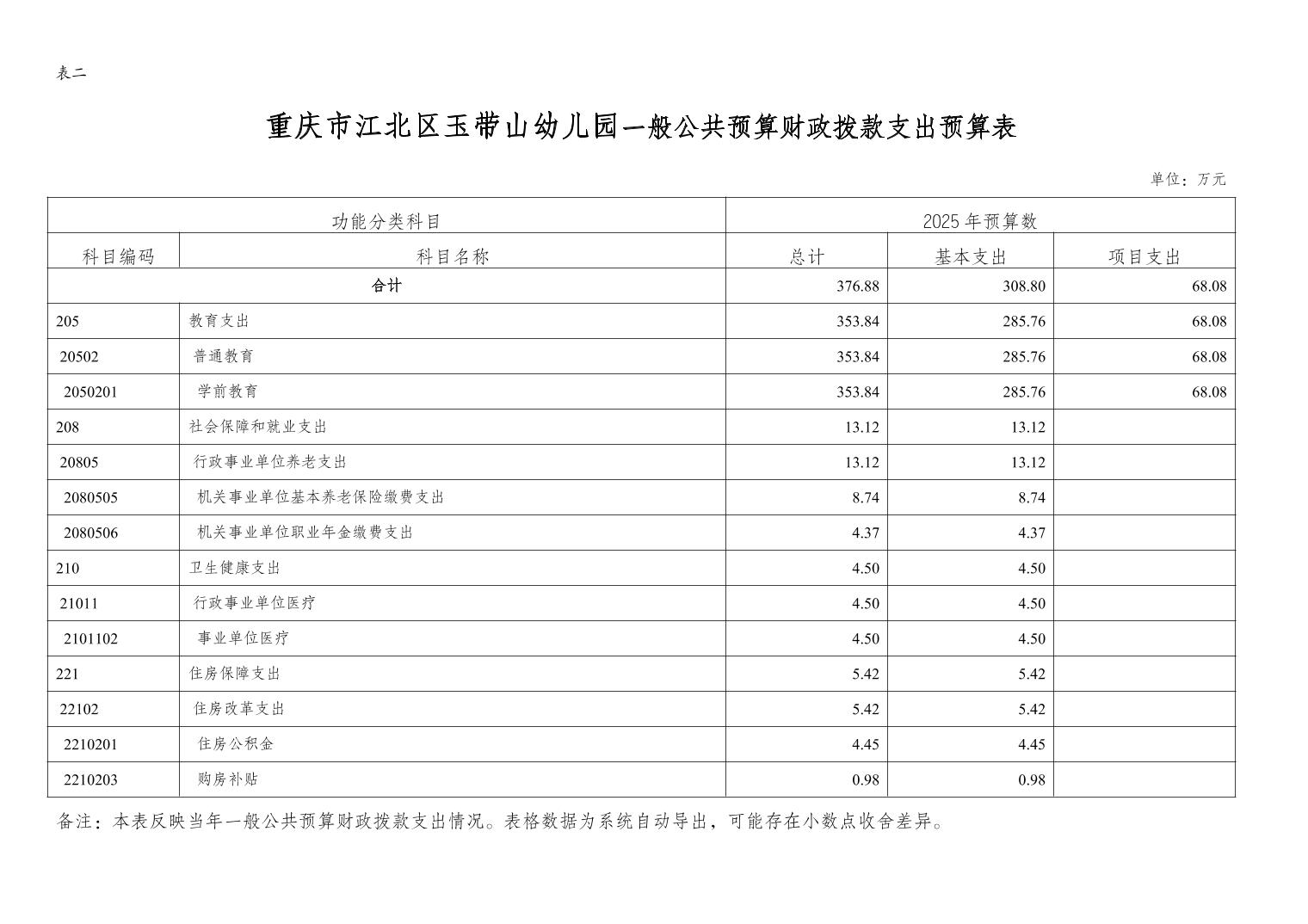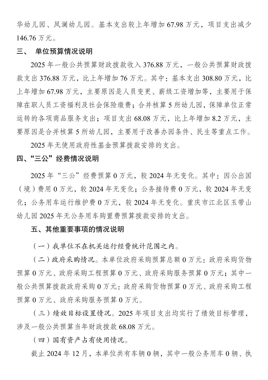 重慶市江北區(qū)玉帶山幼兒園2025年單位預(yù)算情況說(shuō)明