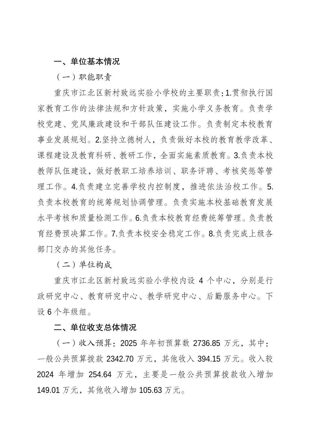 重慶市江北區新村致遠實驗小學校2025年單位預算情況說明