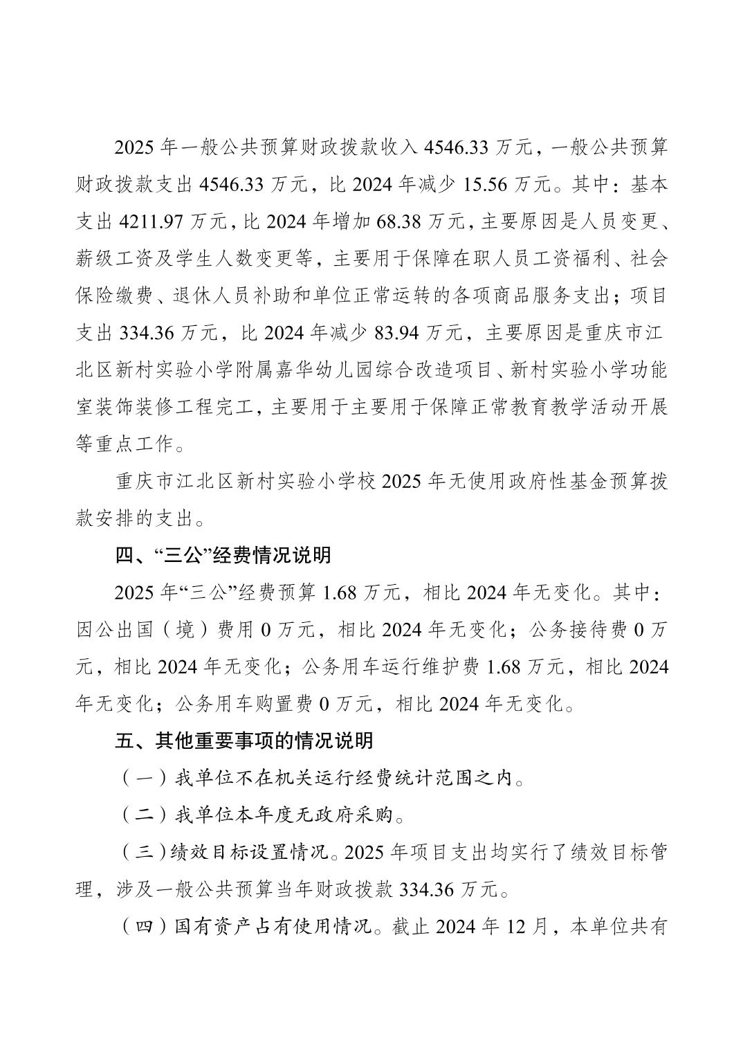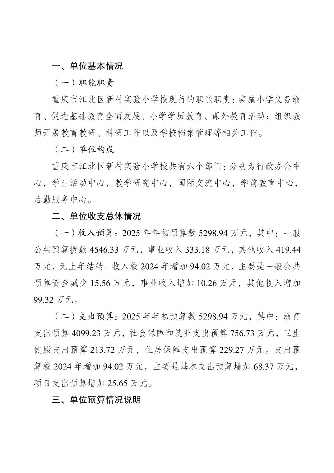 重慶市江北區新村實驗小學校2025年單位預算情況說明