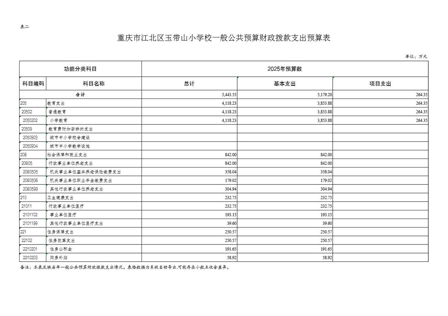 重慶市江北區(qū)玉帶山小學(xué)校2025年單位預(yù)算情況說明