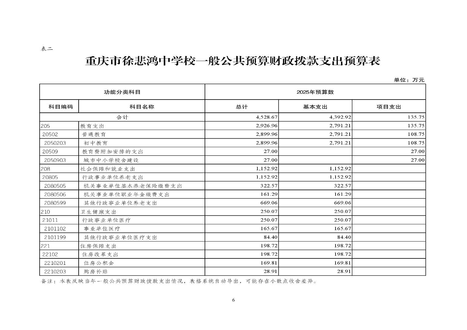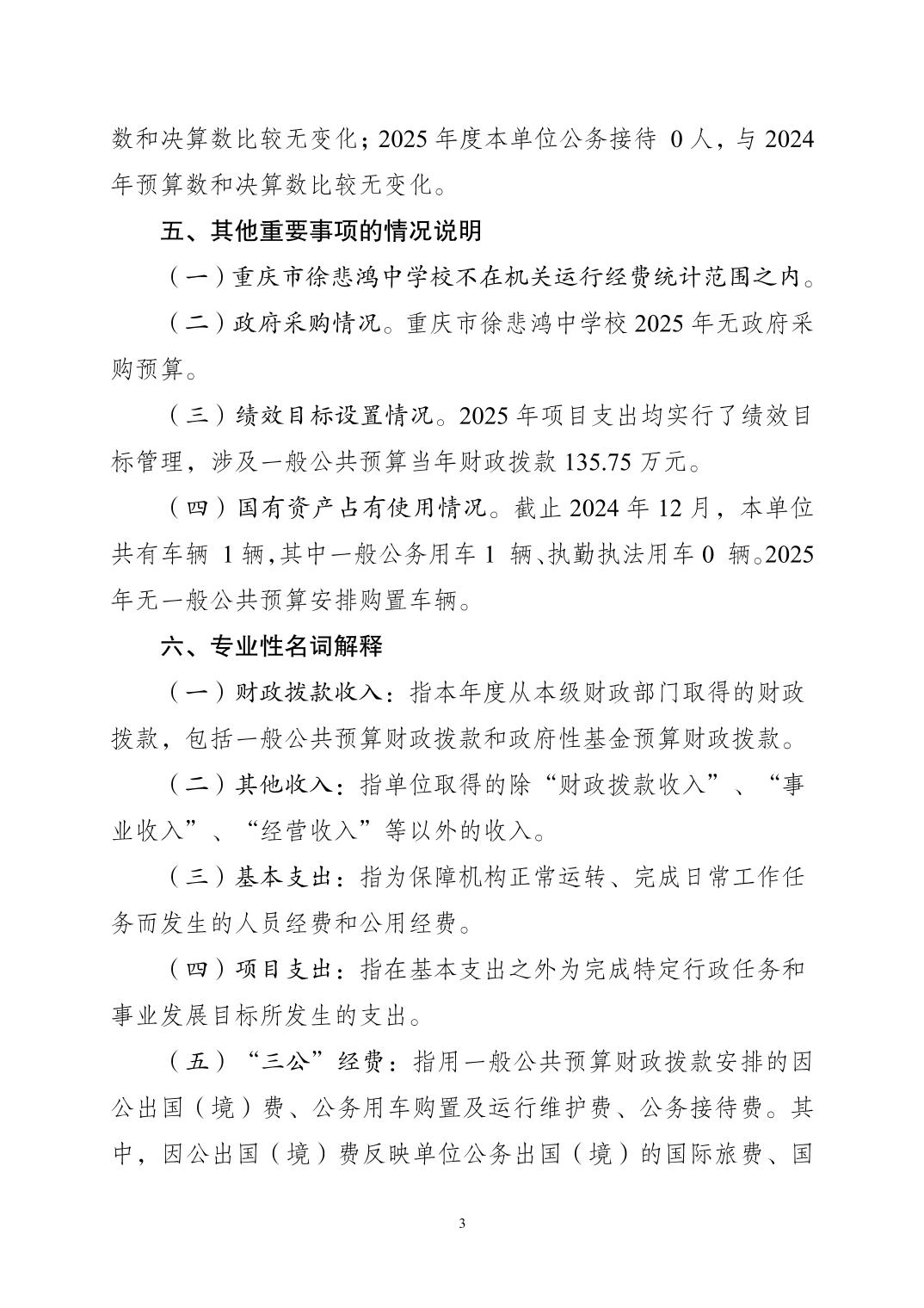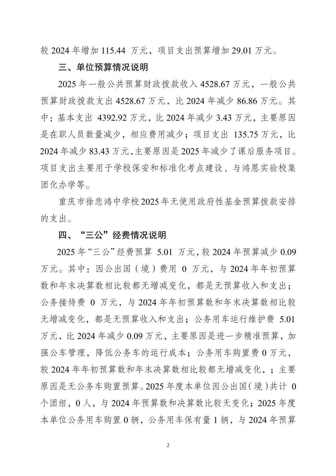 重慶市徐悲鴻中學2025年單位預算情況說明