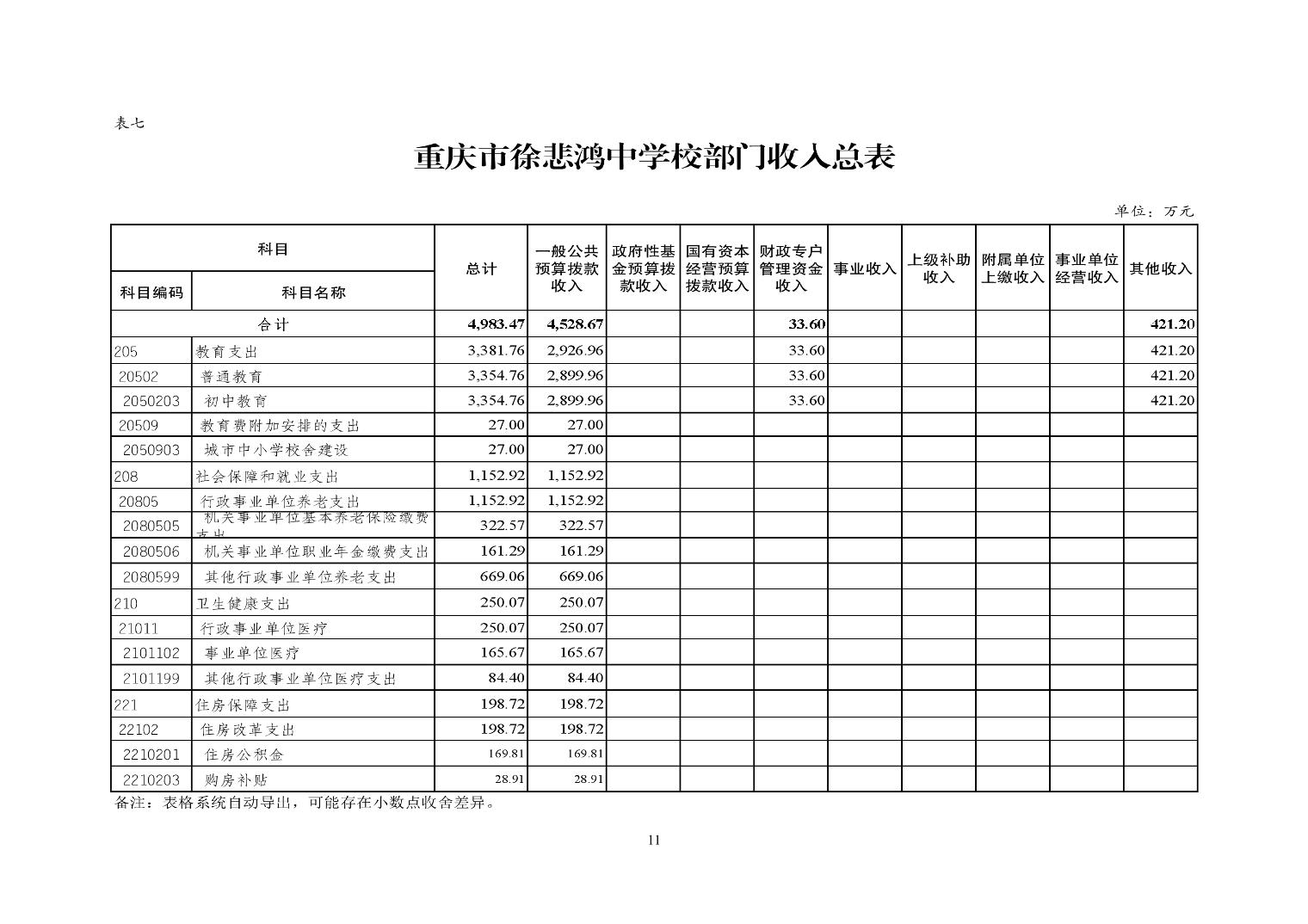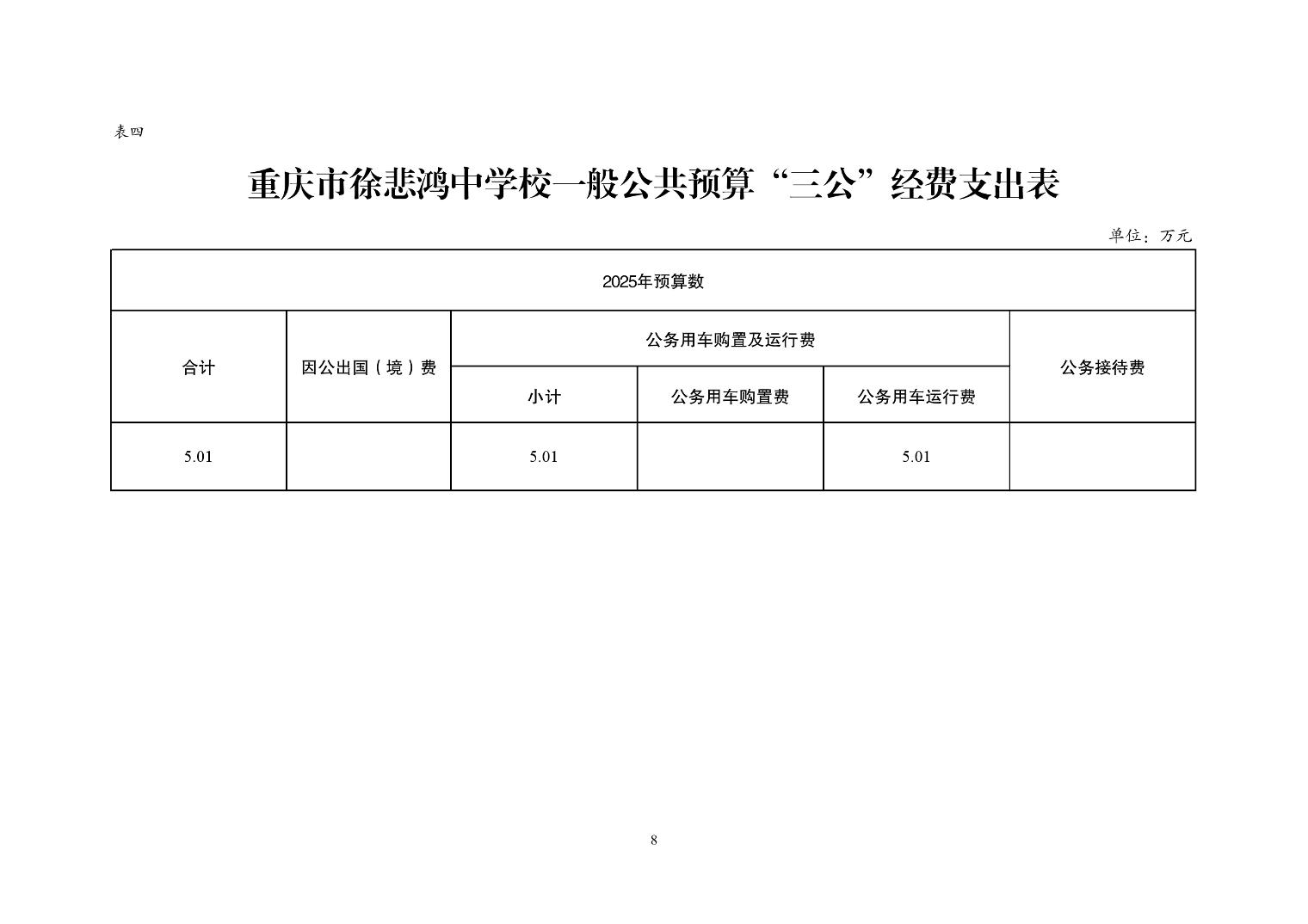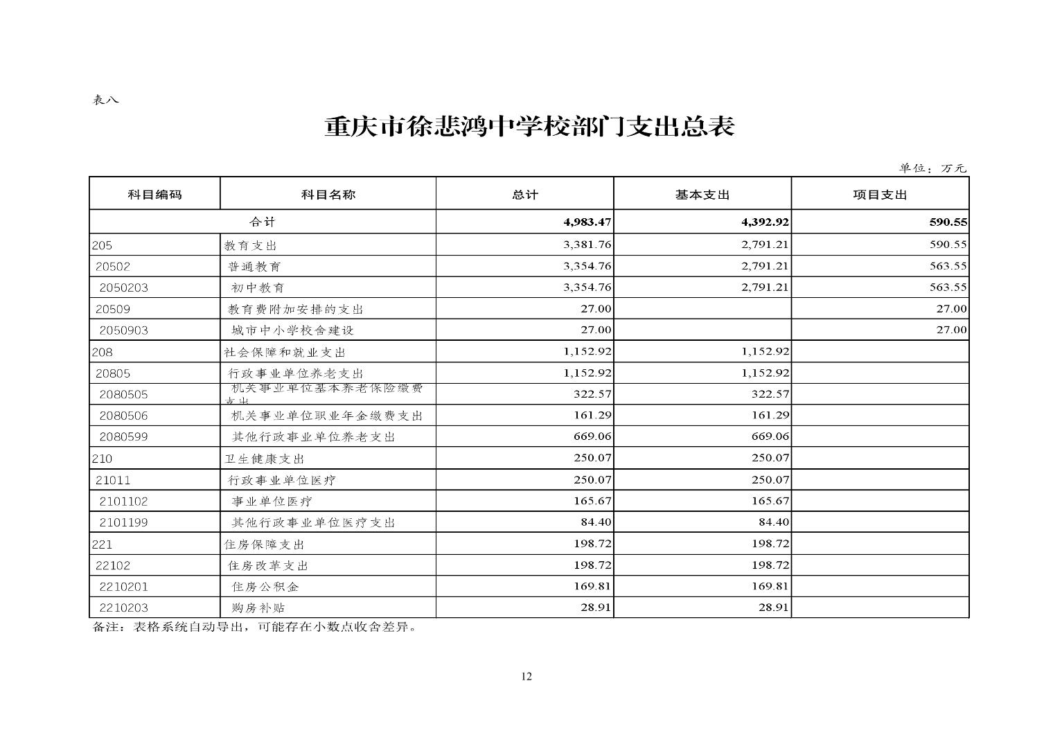 重慶市徐悲鴻中學2025年單位預算情況說明