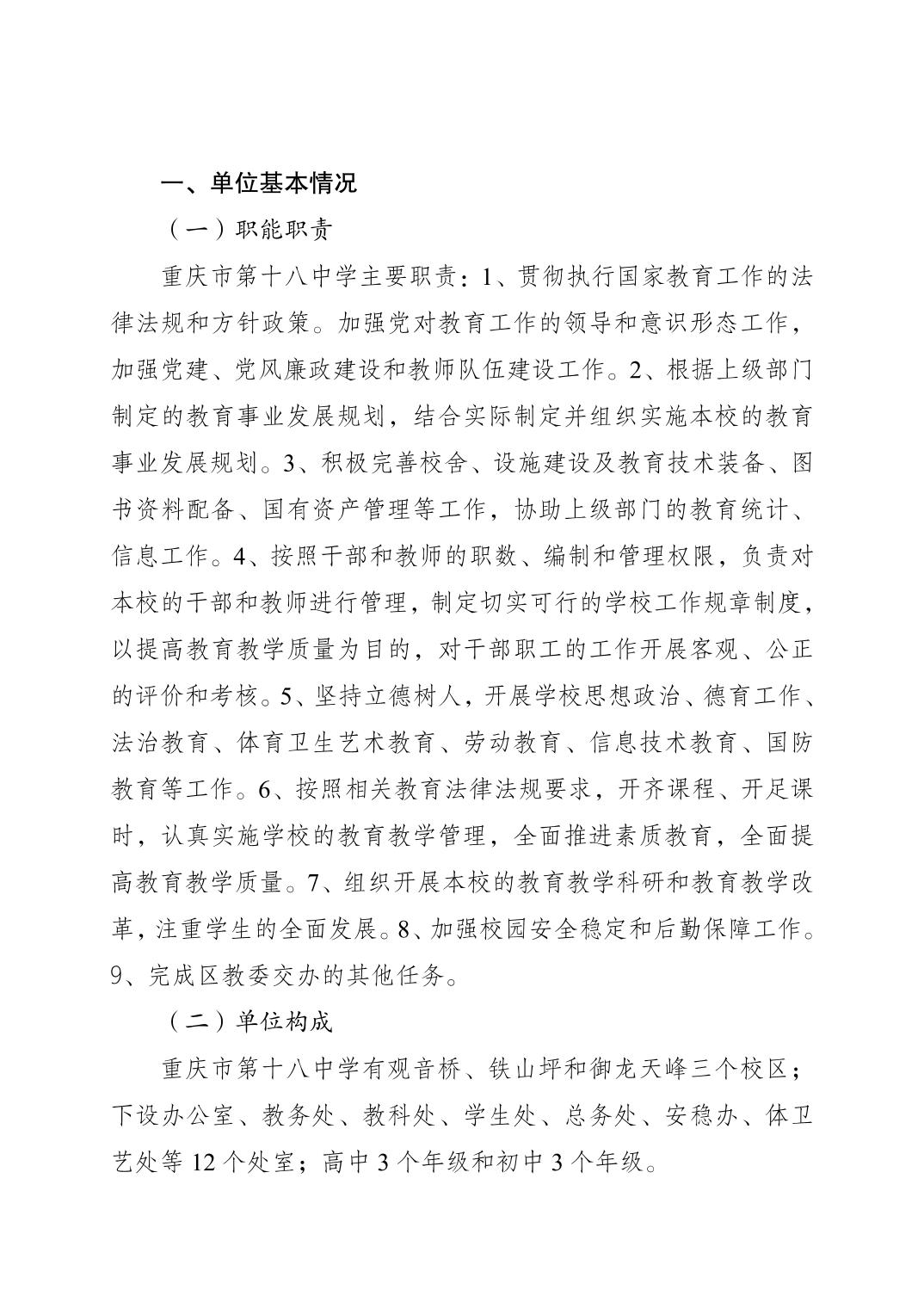 重慶市第十八中學(xué)2025年單位預(yù)算情況說明