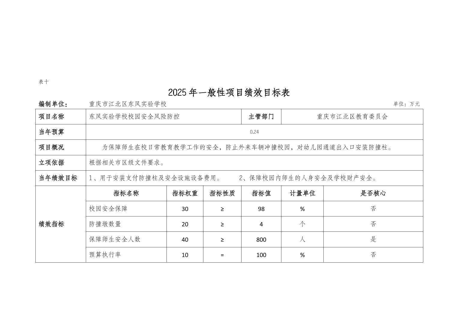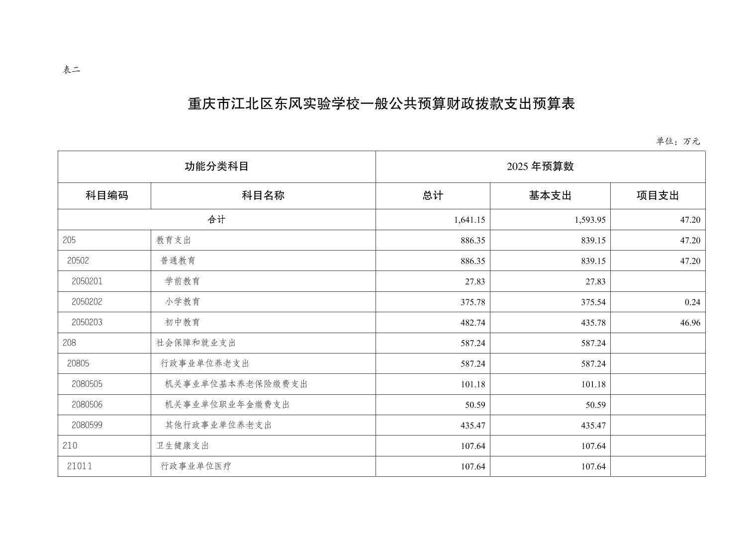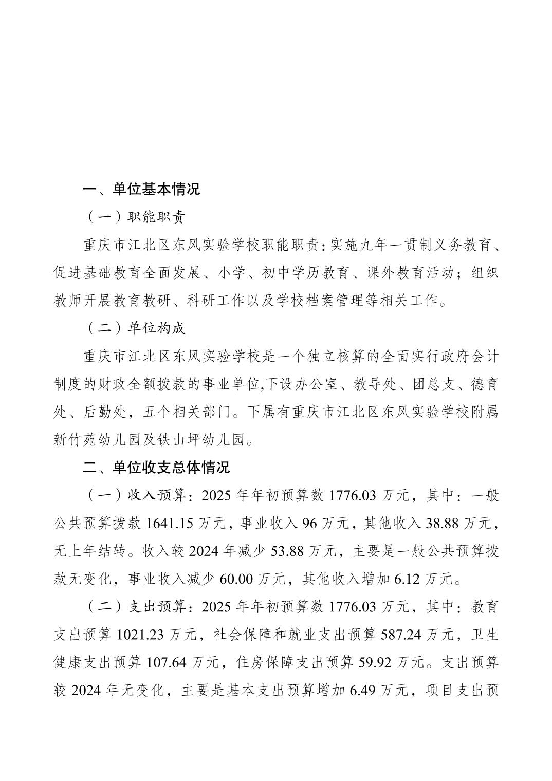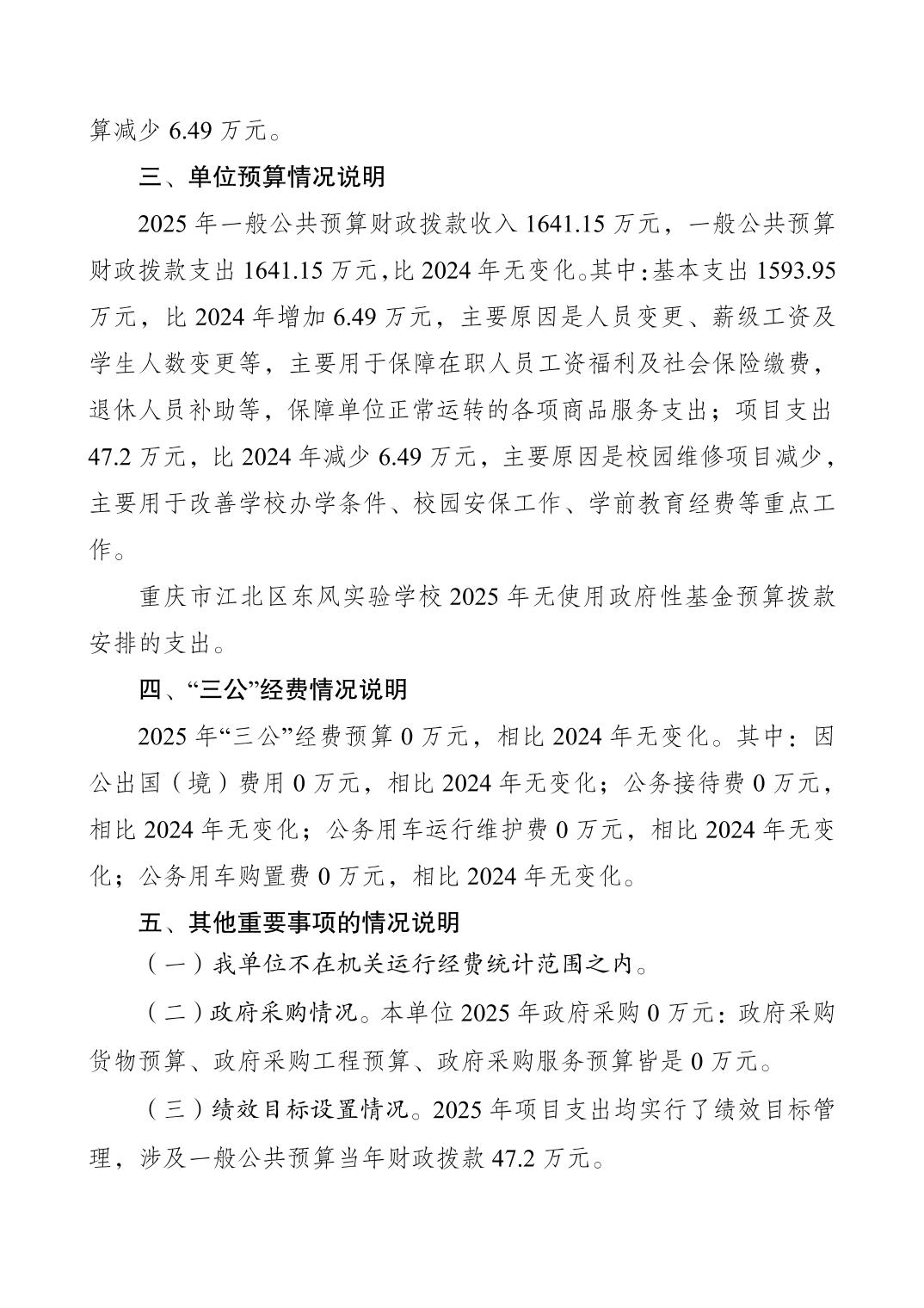 重慶市江北區東風實驗校2025年單位預算情況說明