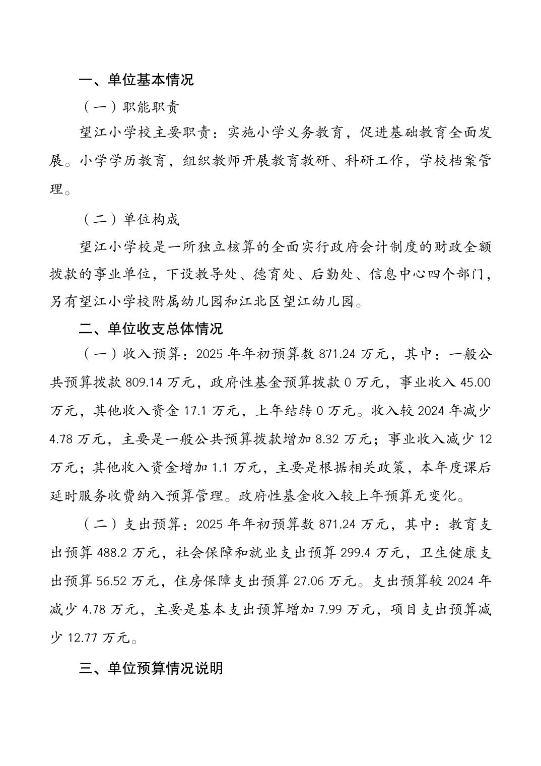 重慶市江北區(qū)望江小學校2025年單位預算情況說明