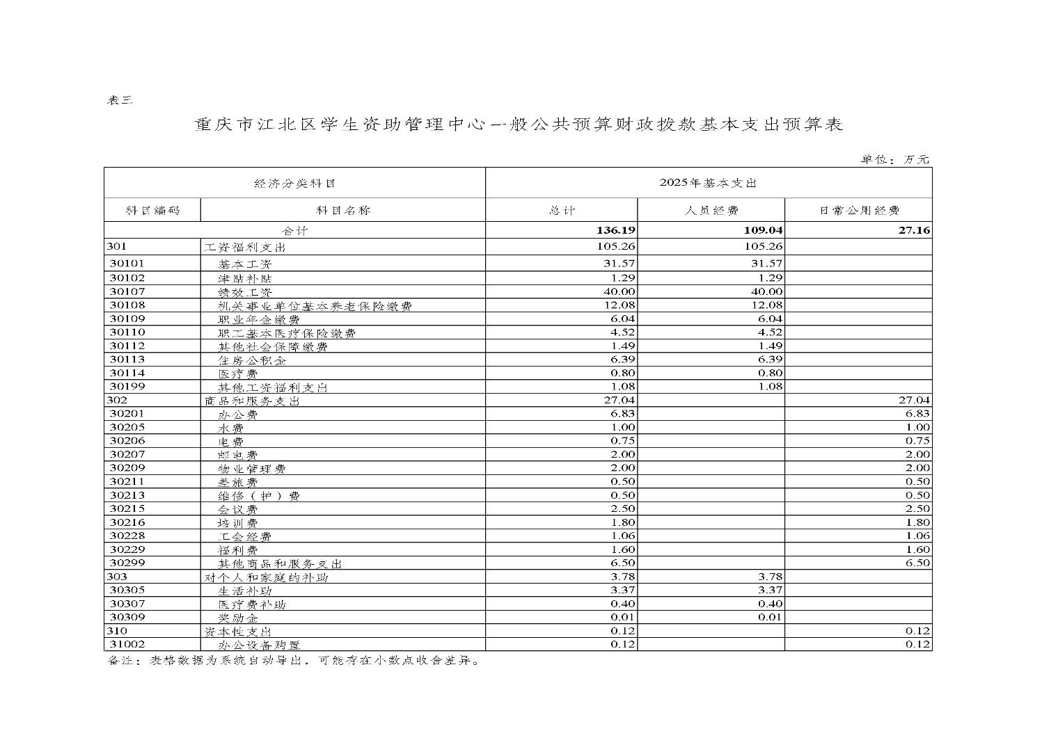 重慶市江北區學生資助管理中心2025年單位預算情況說明