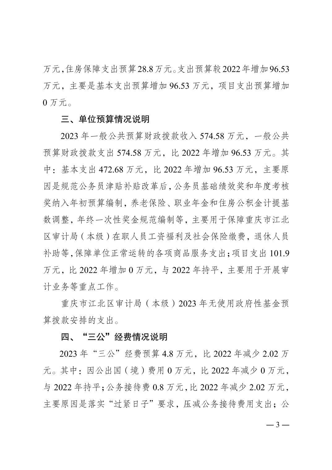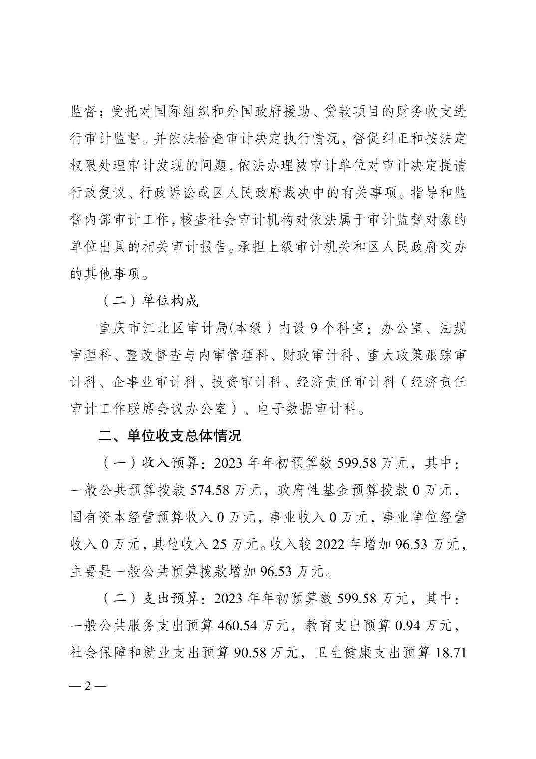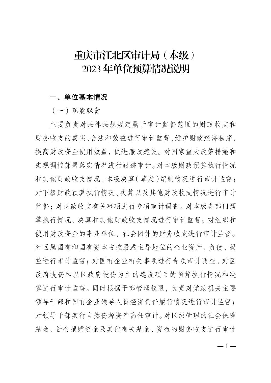 重慶市江北區(qū)審計(jì)局(本級)2023年單位預(yù)算情況說明