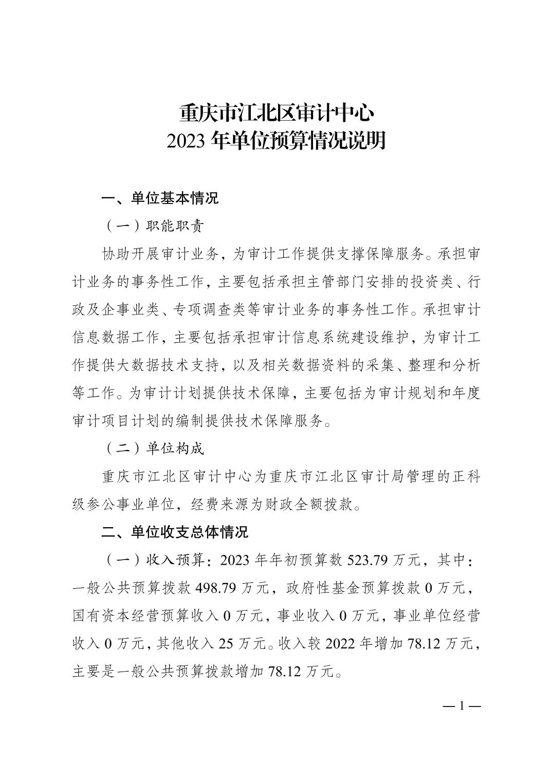 重慶市江北區(qū)審計中心2023年單位預算情況說明