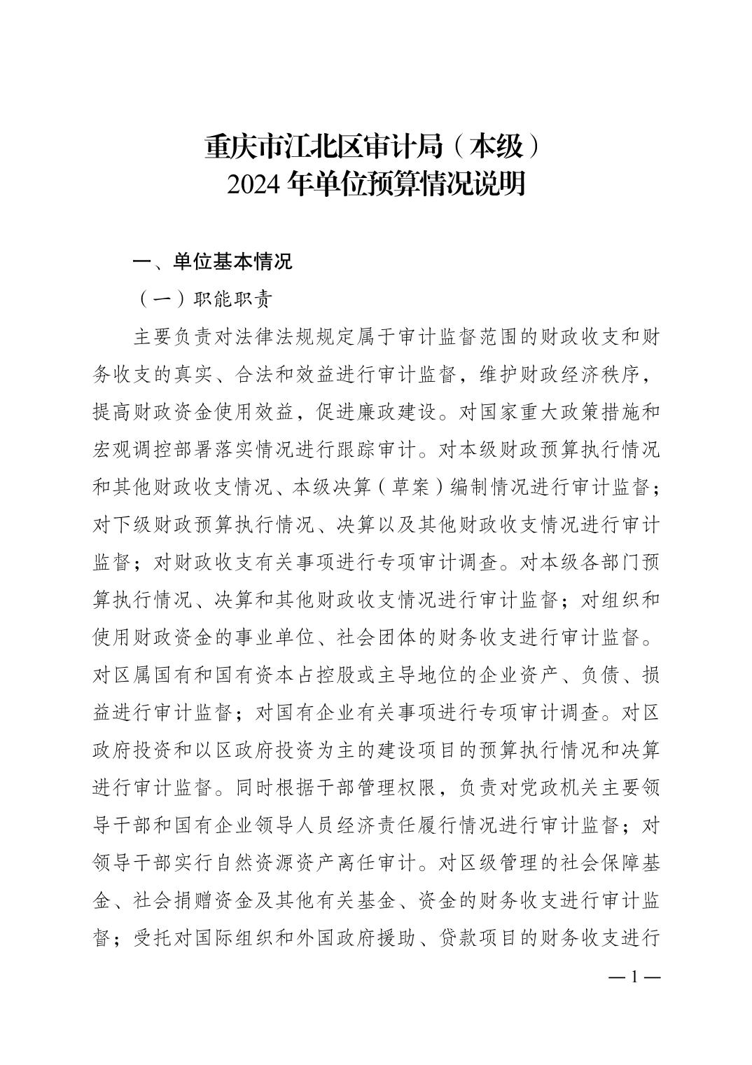 重慶市江北區(qū)審計局(本級)2024年單位預(yù)算情況說明