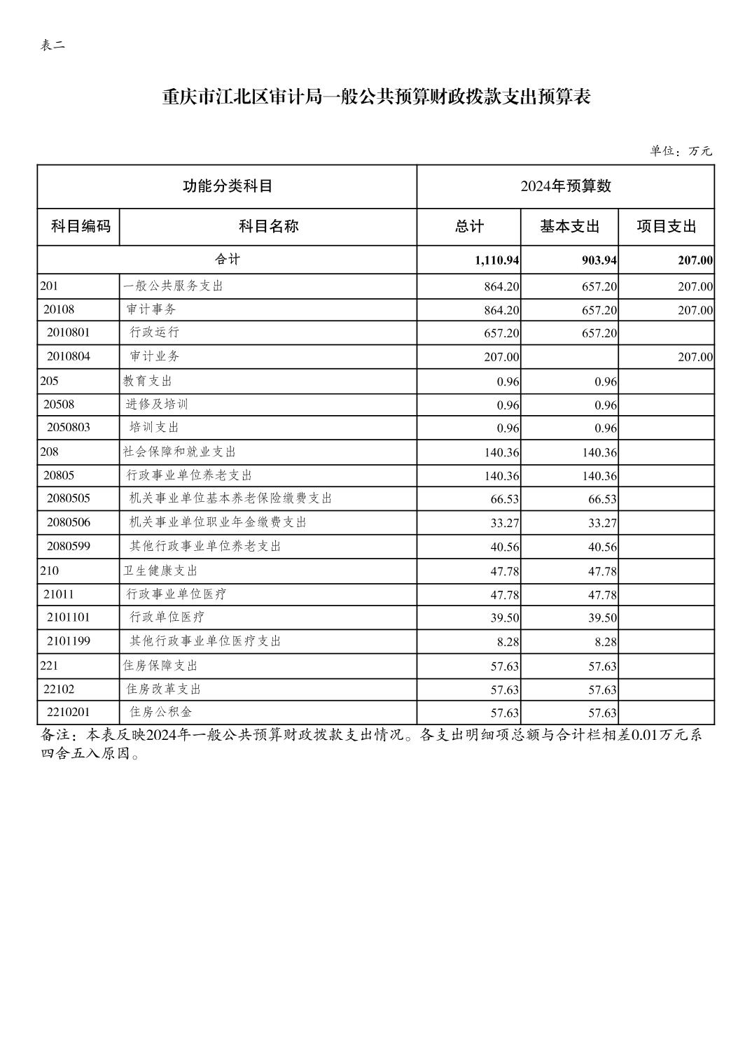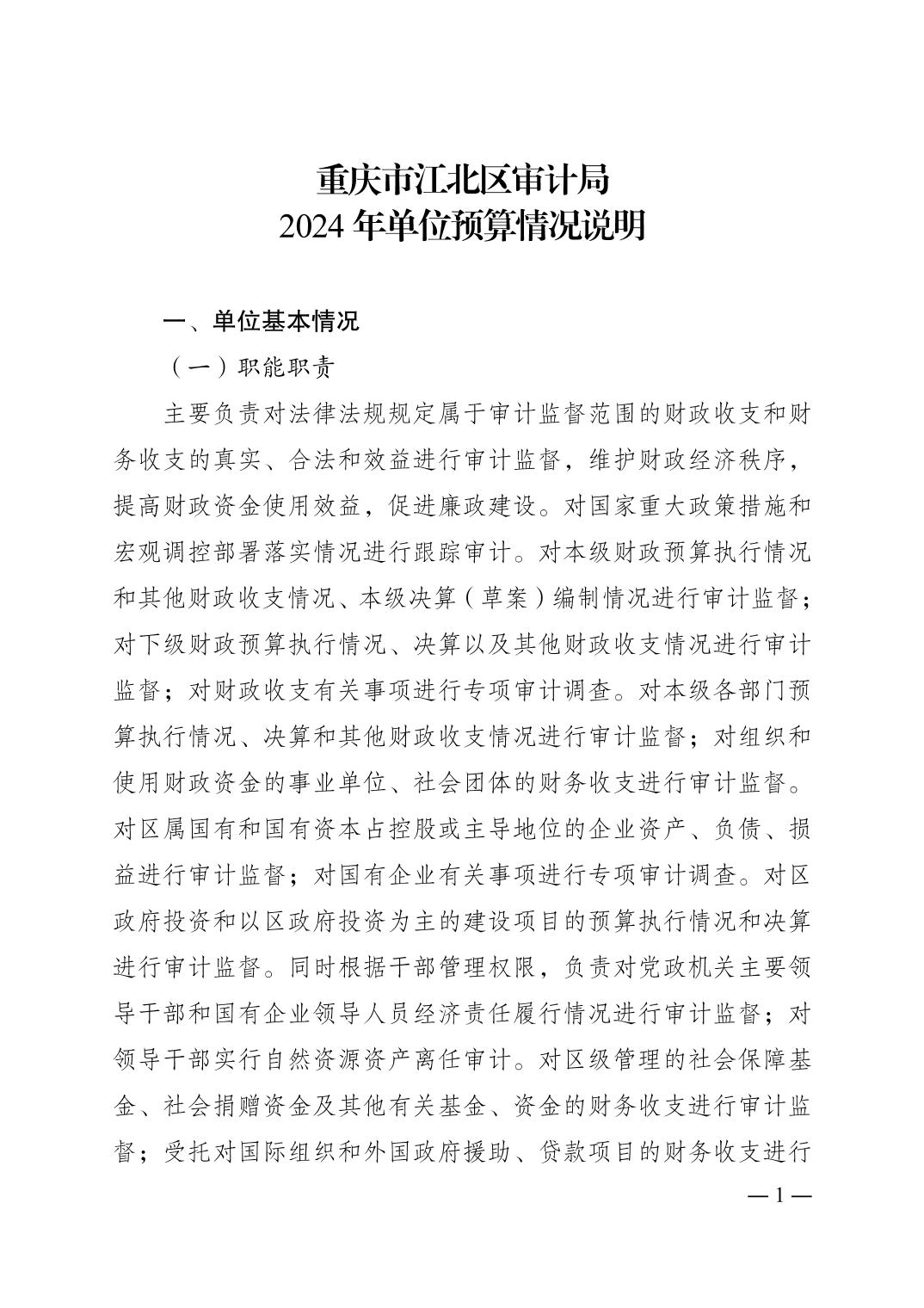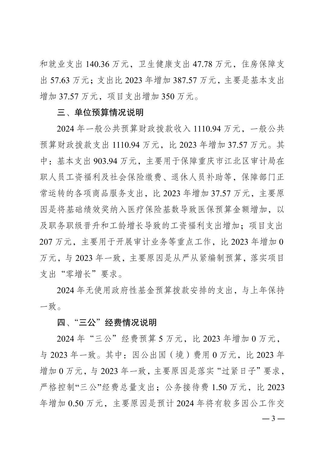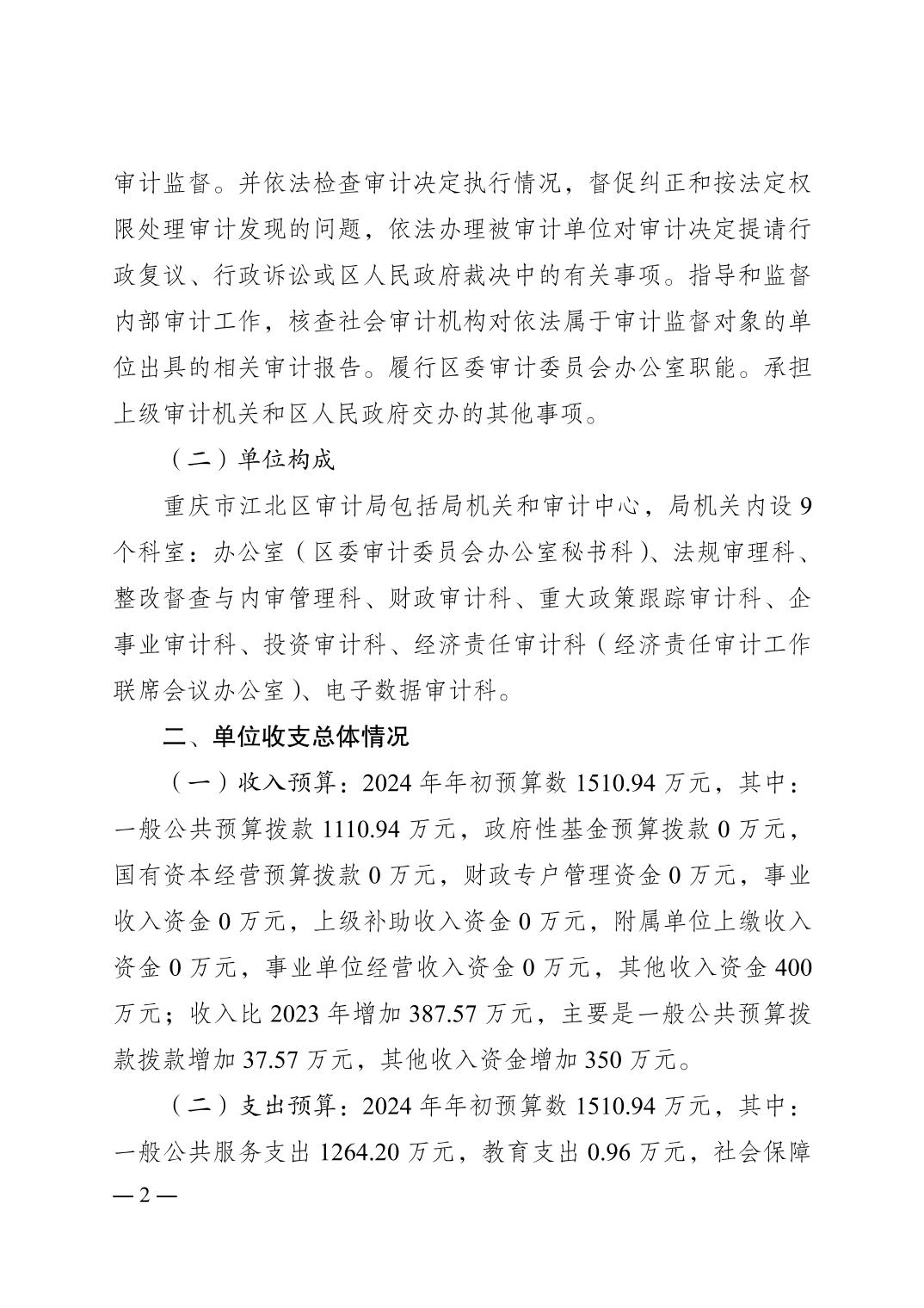 重慶市江北區審計局2024年單位預算情況說明