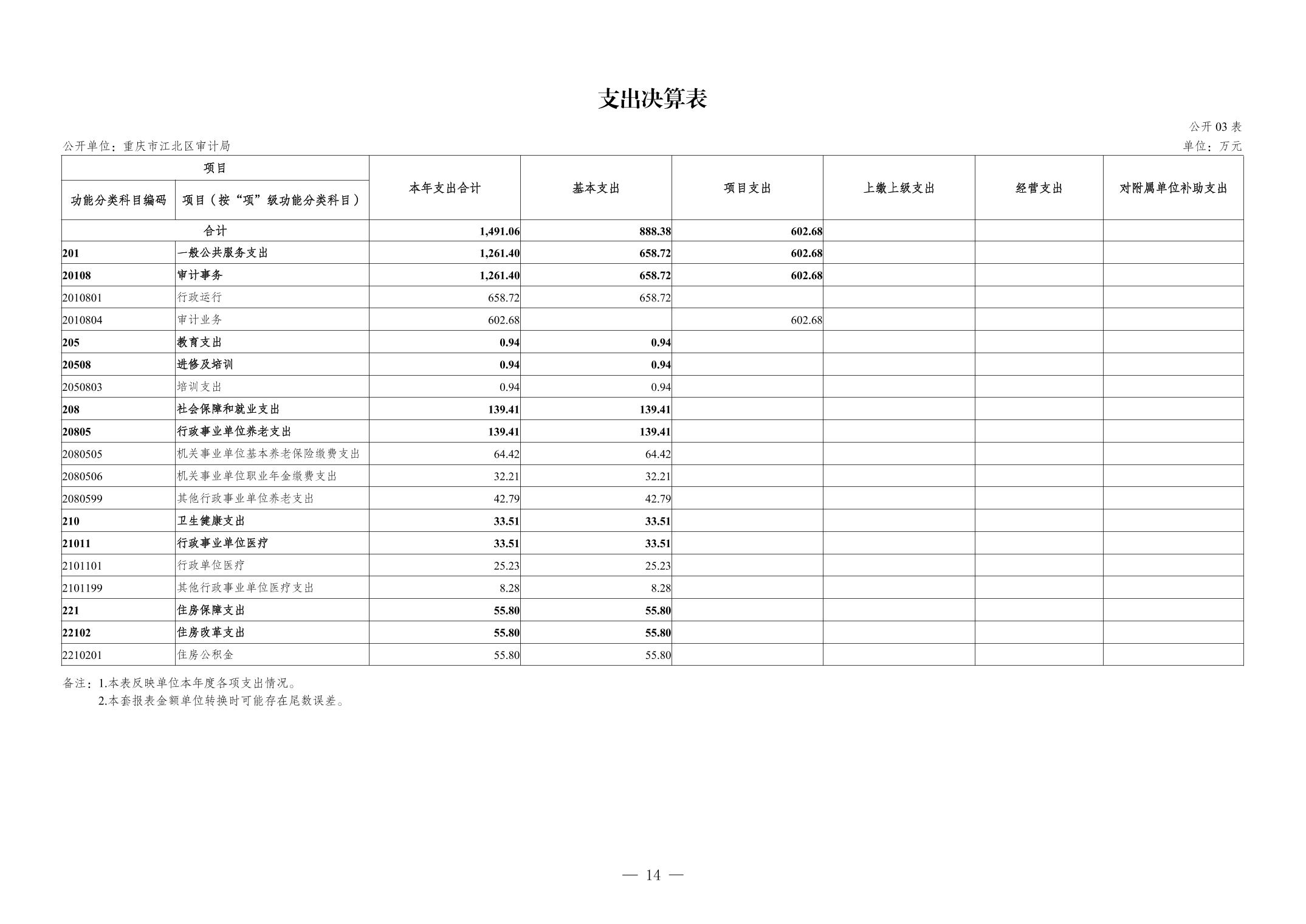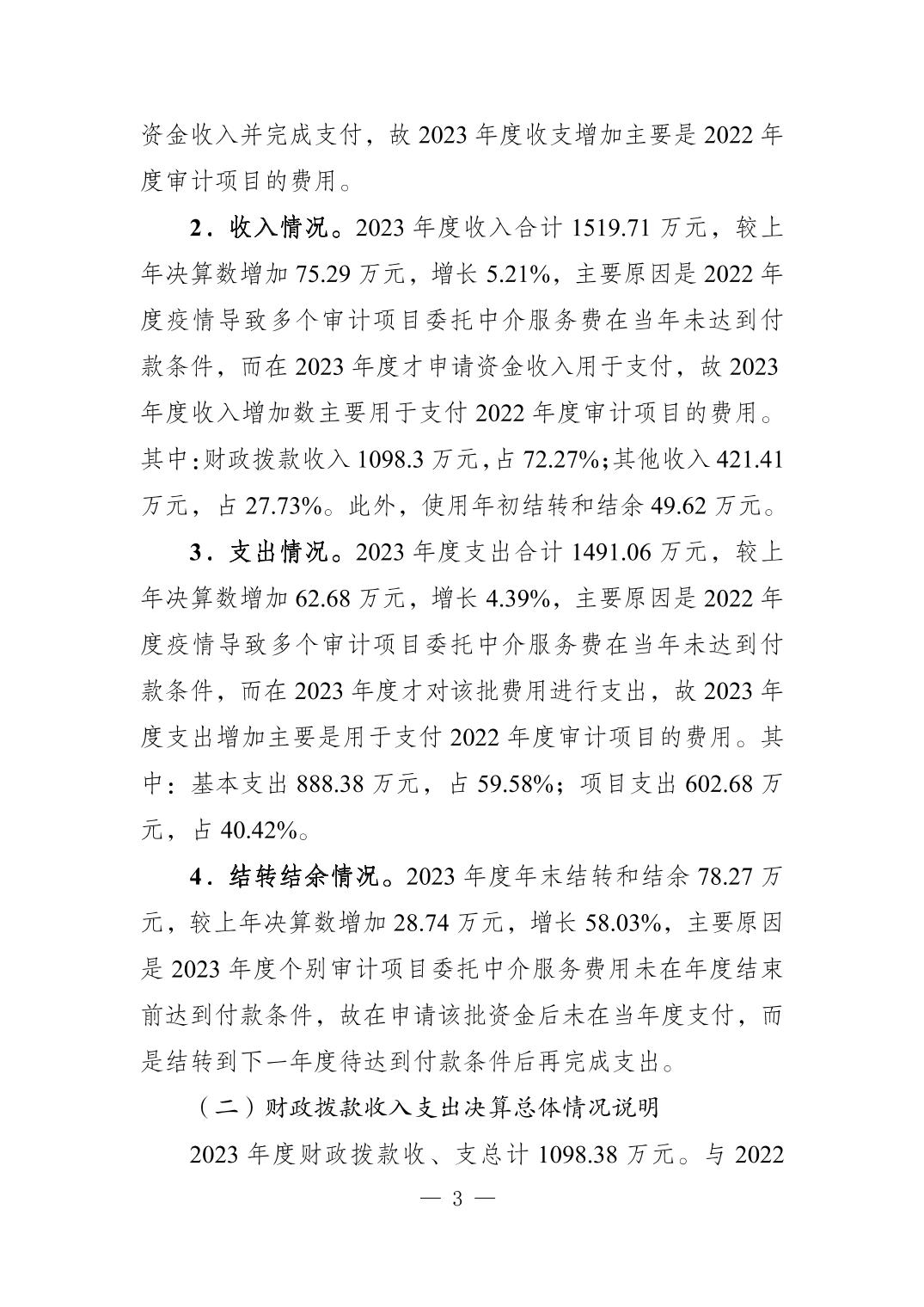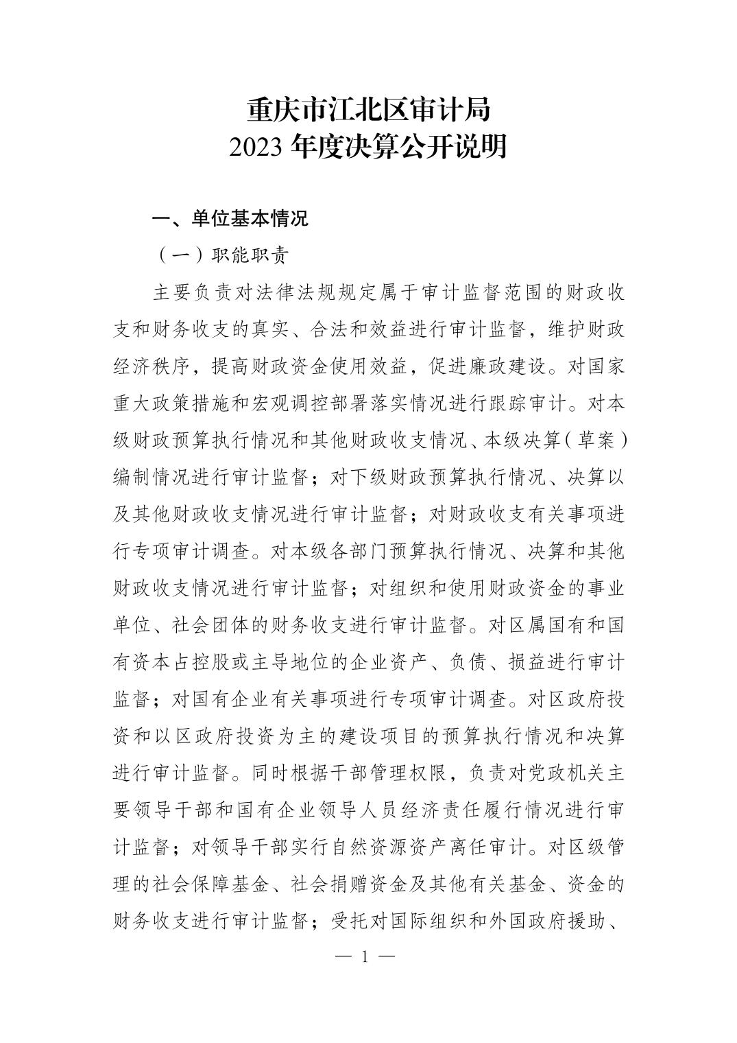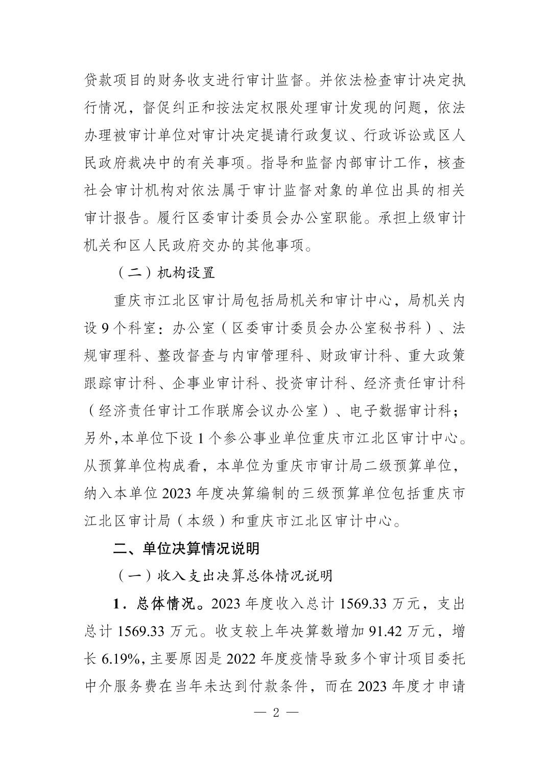 重慶市江北區審計局2023年度決算公開說明