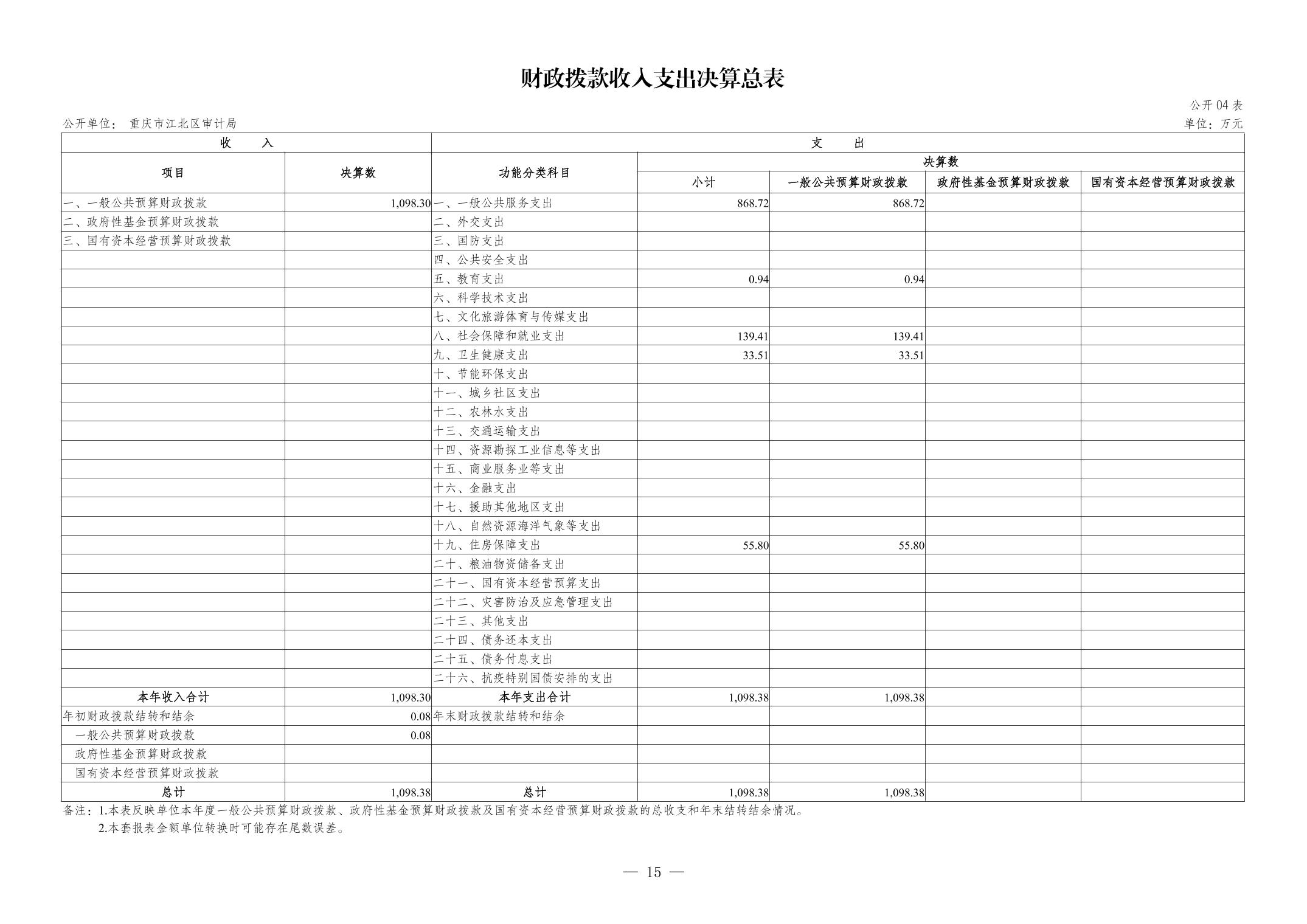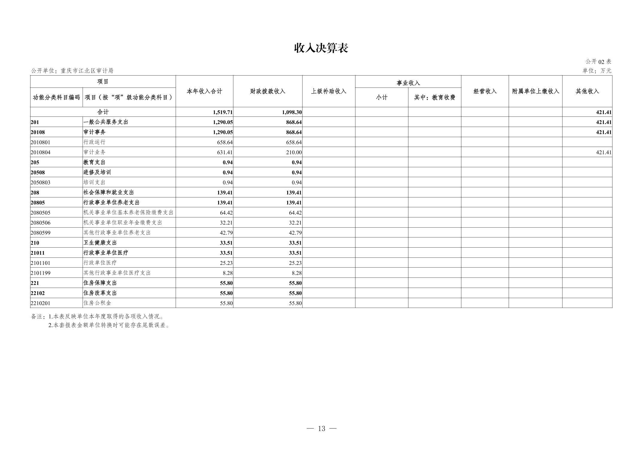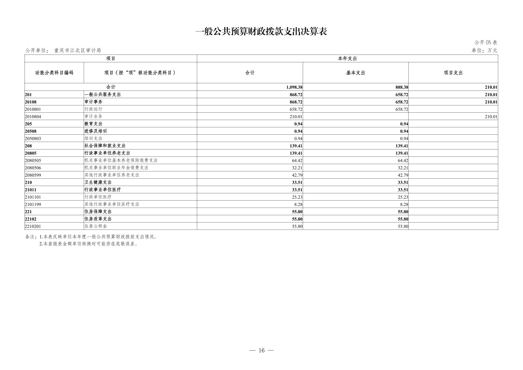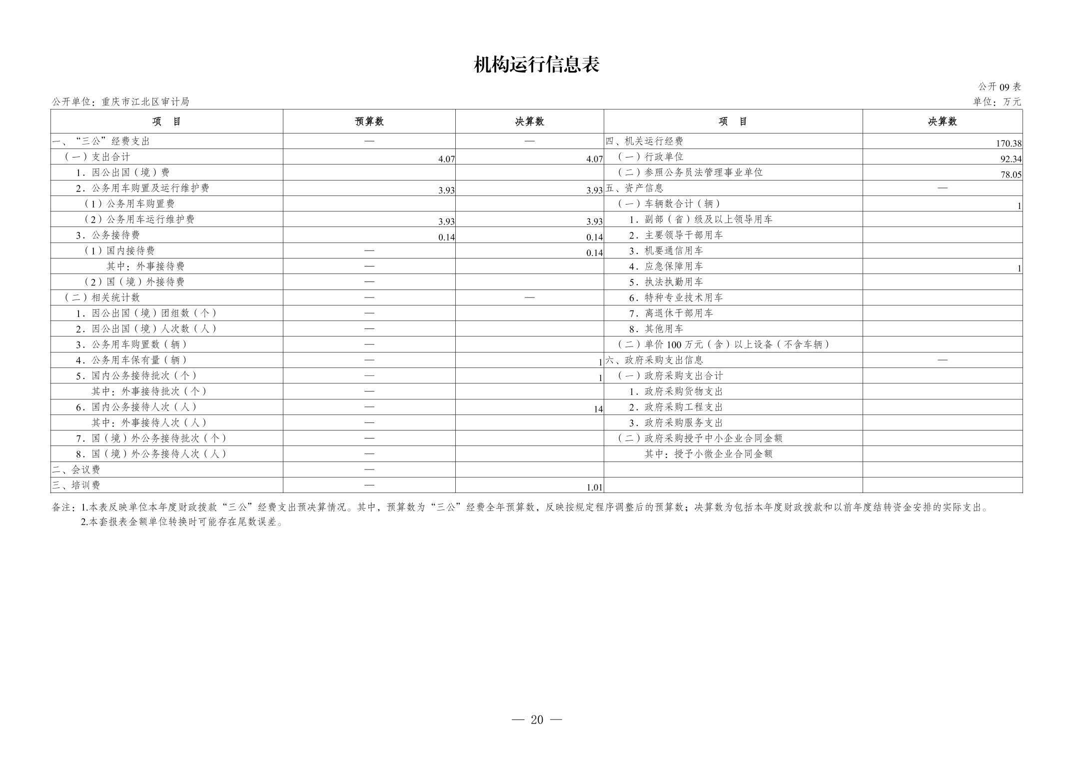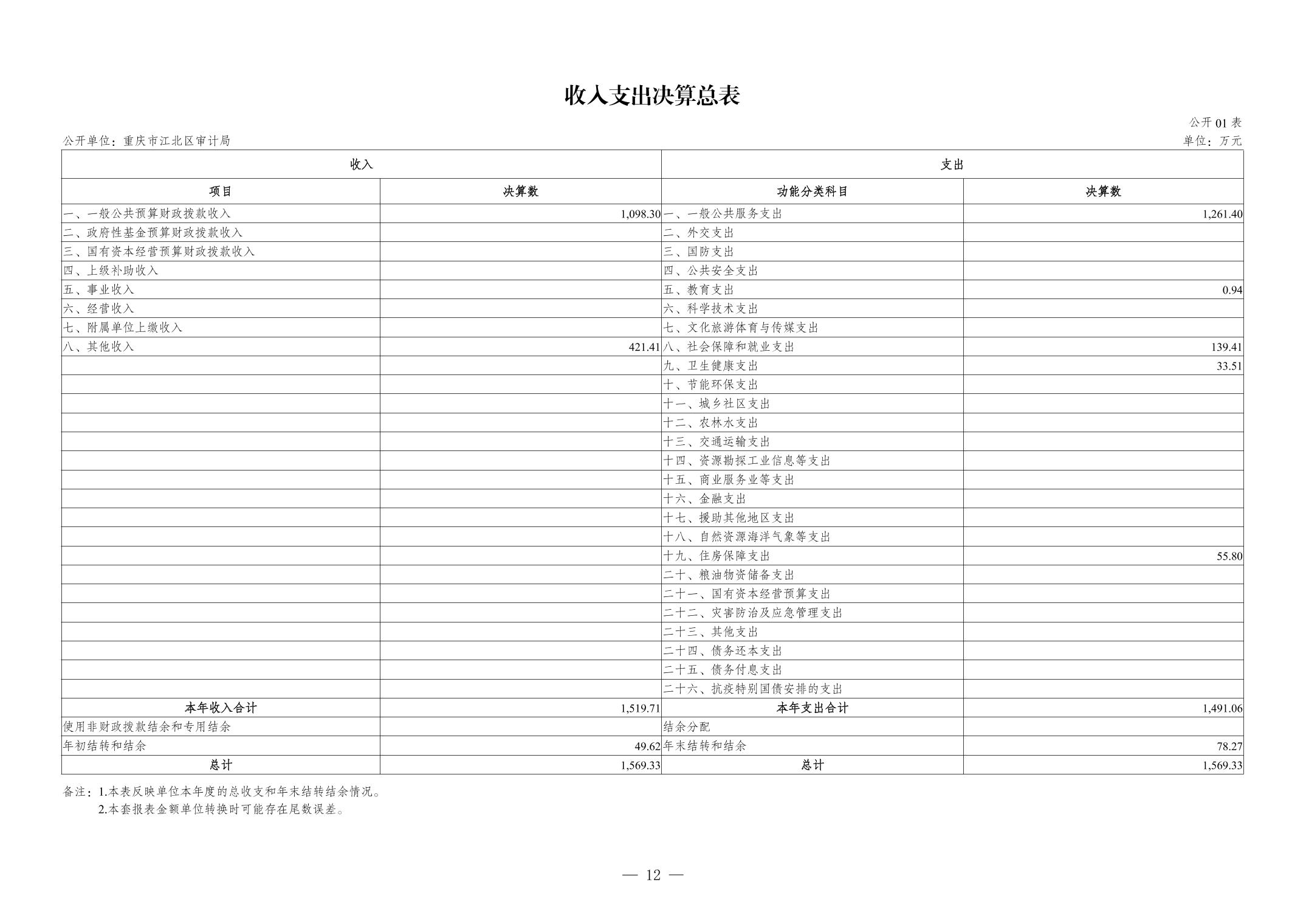 重慶市江北區審計局2023年度決算公開說明