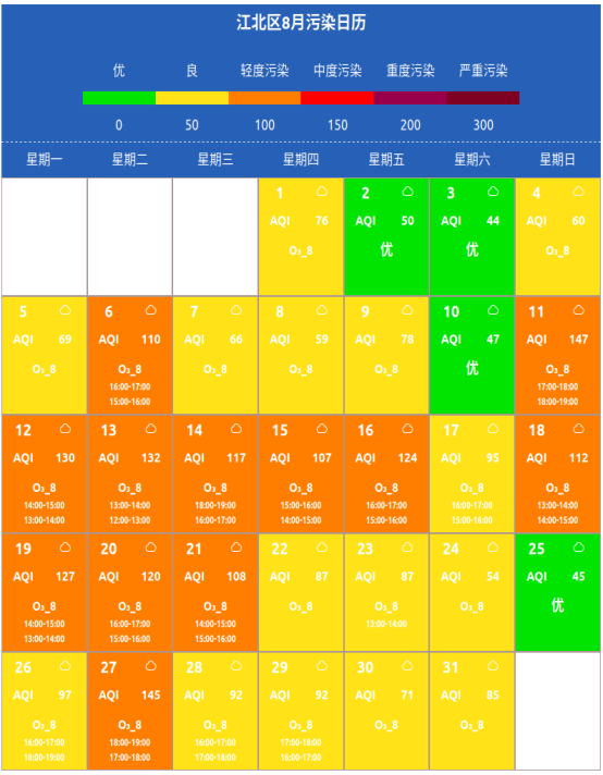 江北區(qū)生態(tài)環(huán)境空氣質(zhì)量報告(2024年8月)