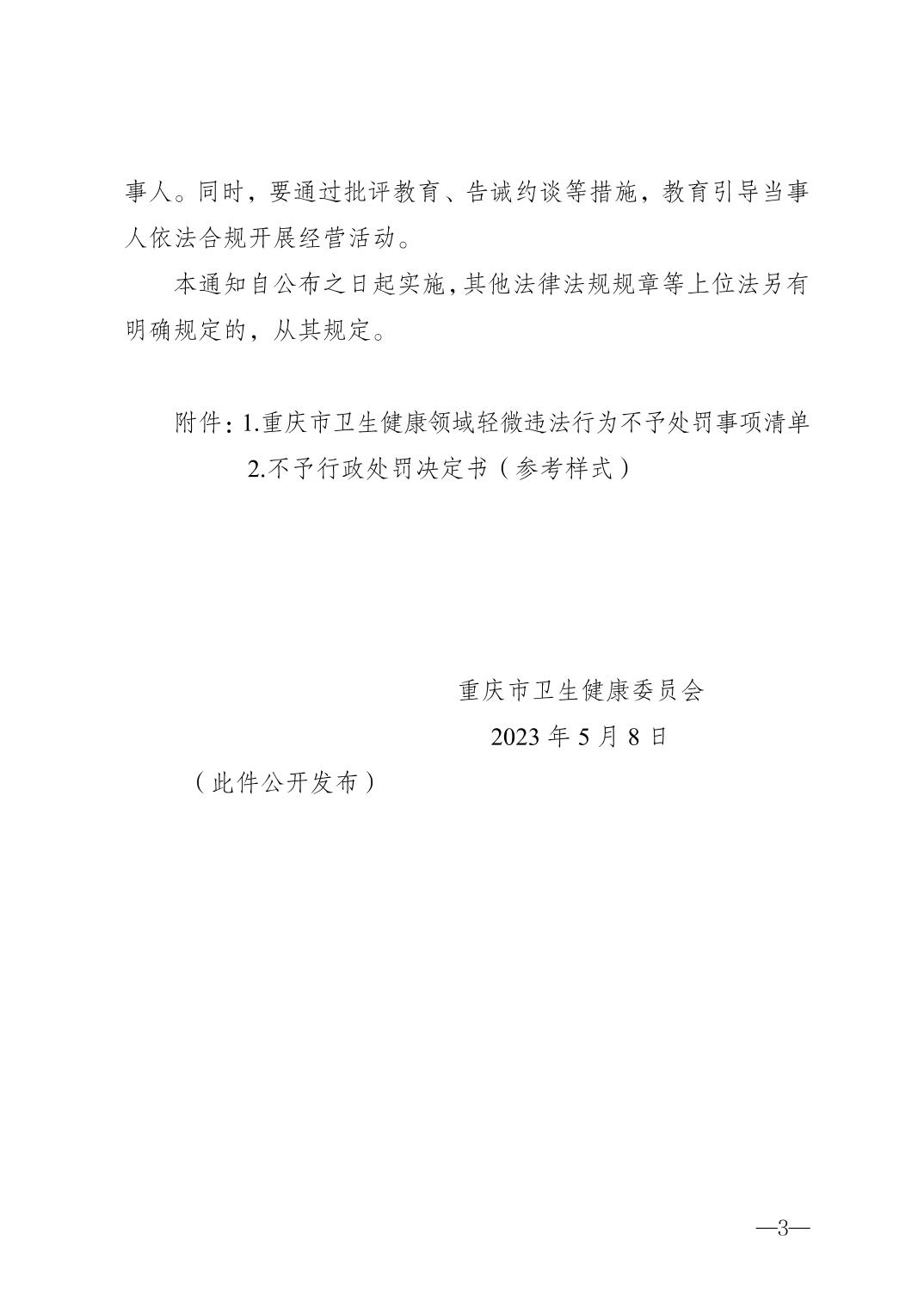 重慶市衛(wèi)生健康委員會(huì)關(guān)于印發(fā)重慶市衛(wèi)生健康領(lǐng)域輕微違法行為不予處罰事項(xiàng)清單的通知