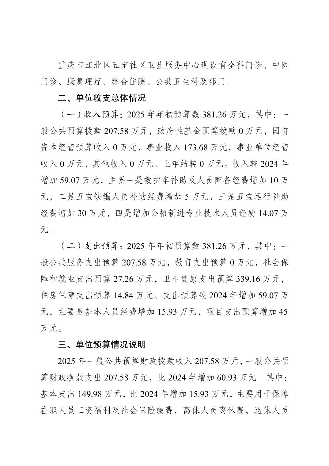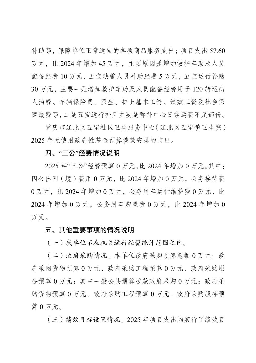 重慶市江北區五寶社區衛生服務中心(江北區五寶鎮衛生院)2025年單位預算情況說明