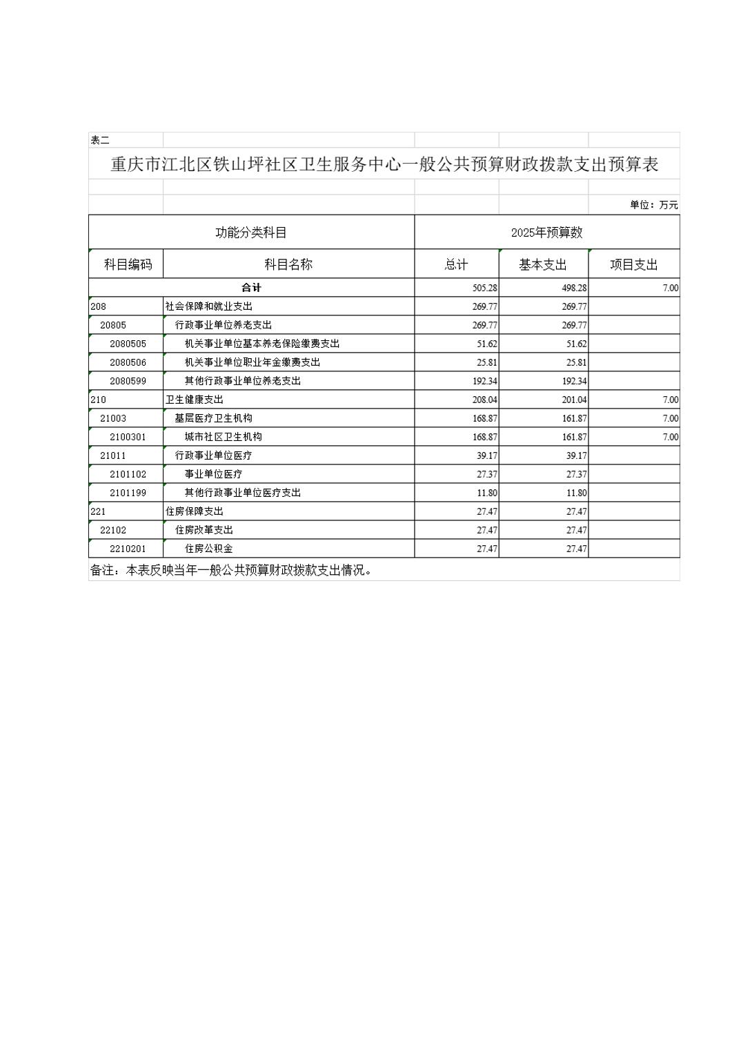 重慶市江北區鐵山坪社區衛生服務中心2025年單位預算情況說明