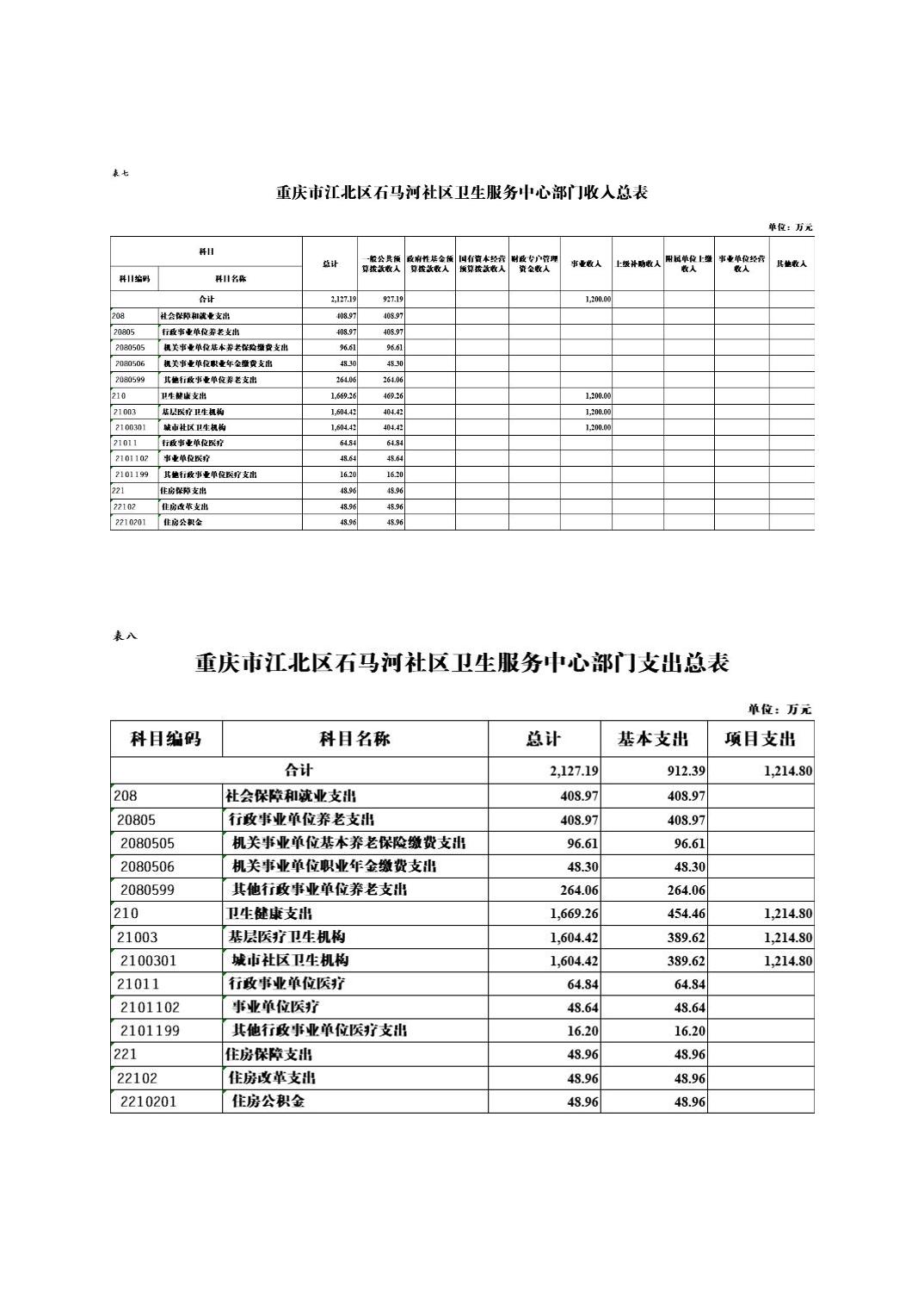 重慶市江北區石馬河社區衛生服務中心2025年度單位預算情況說明