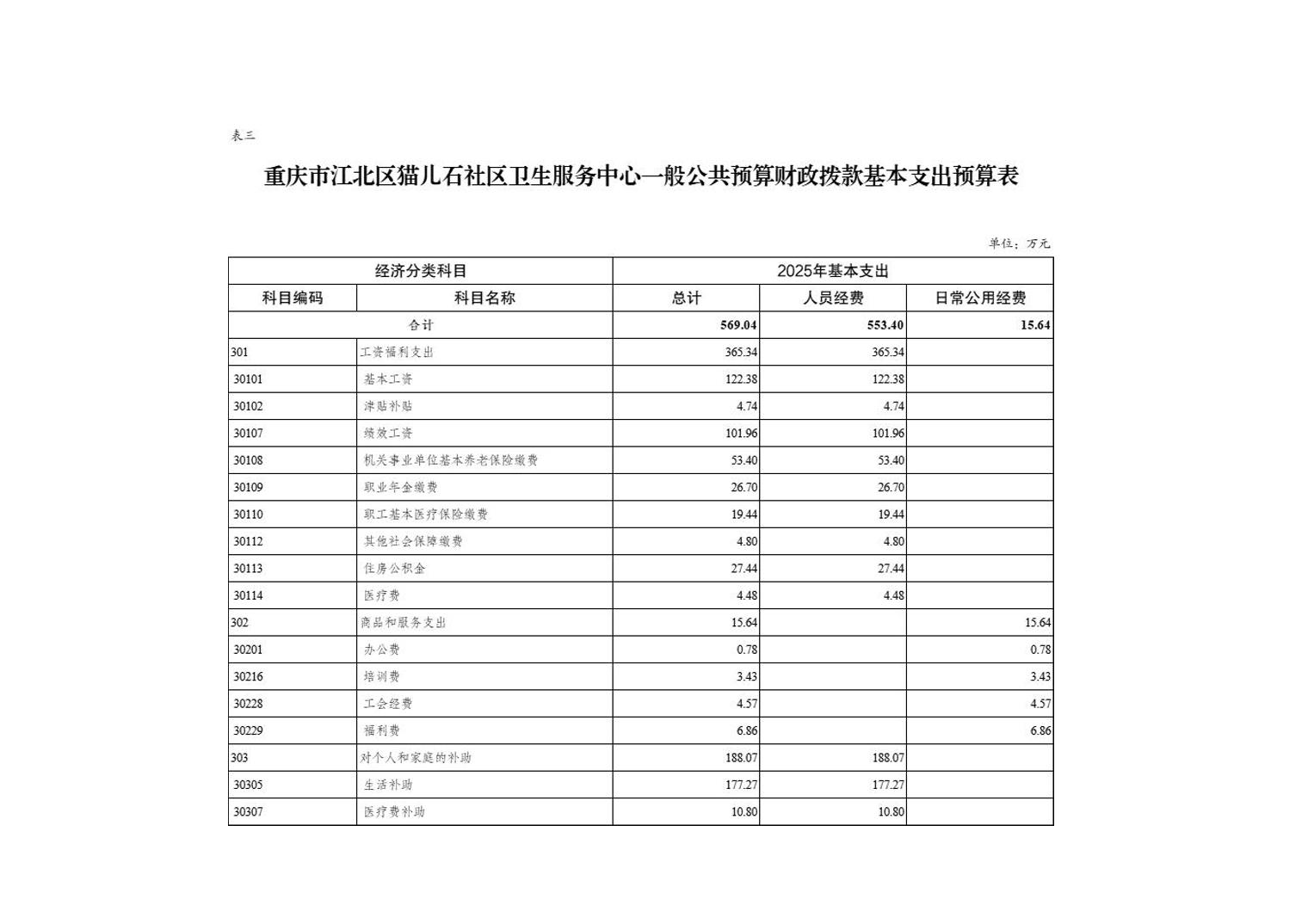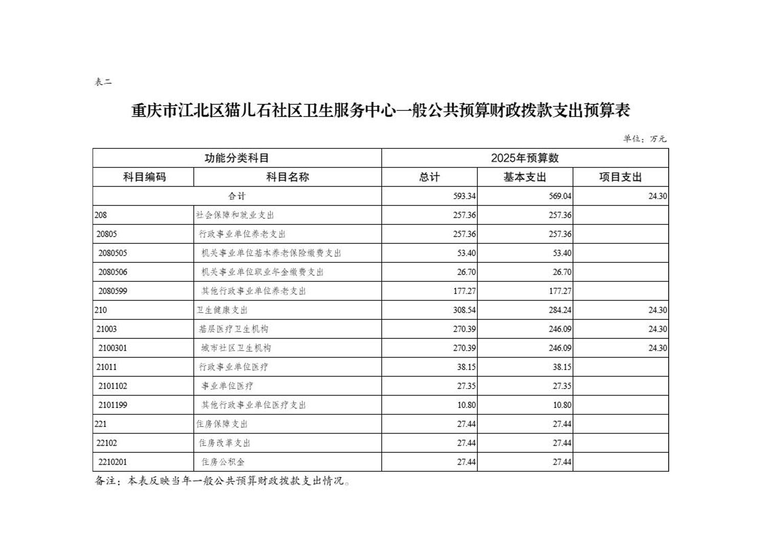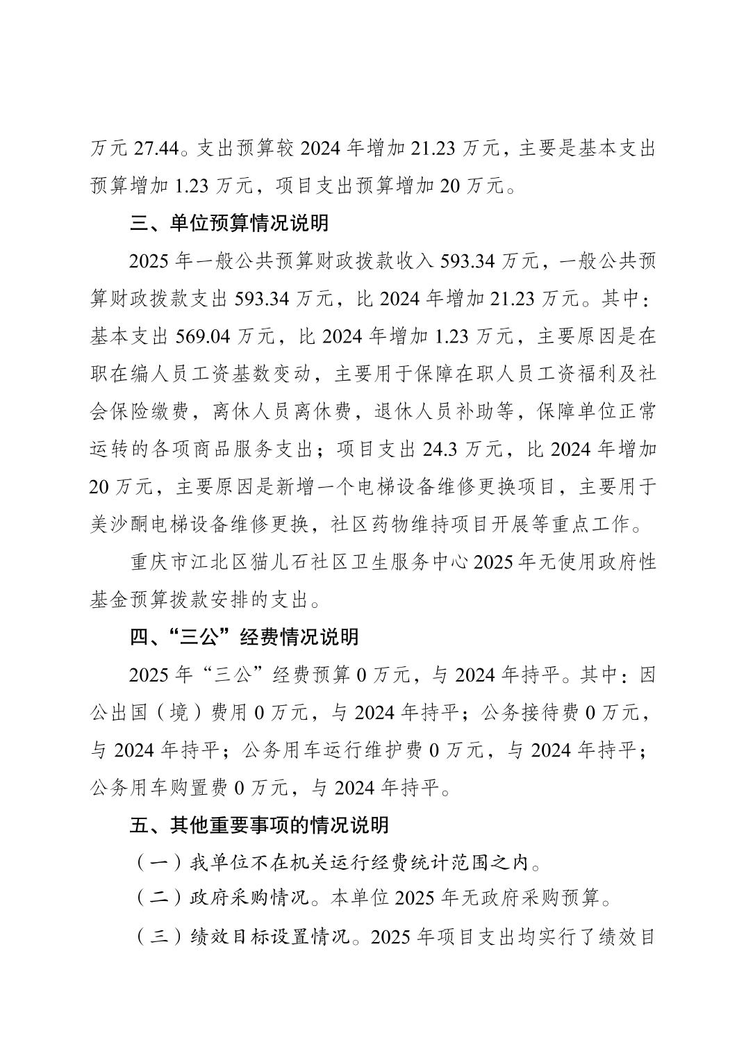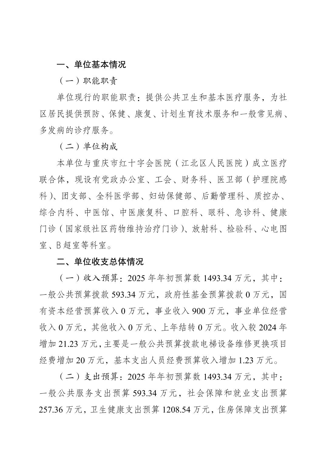 重慶市江北區(qū)貓兒石社區(qū)衛(wèi)生服務(wù)中心2025年度單位預(yù)算情況說明