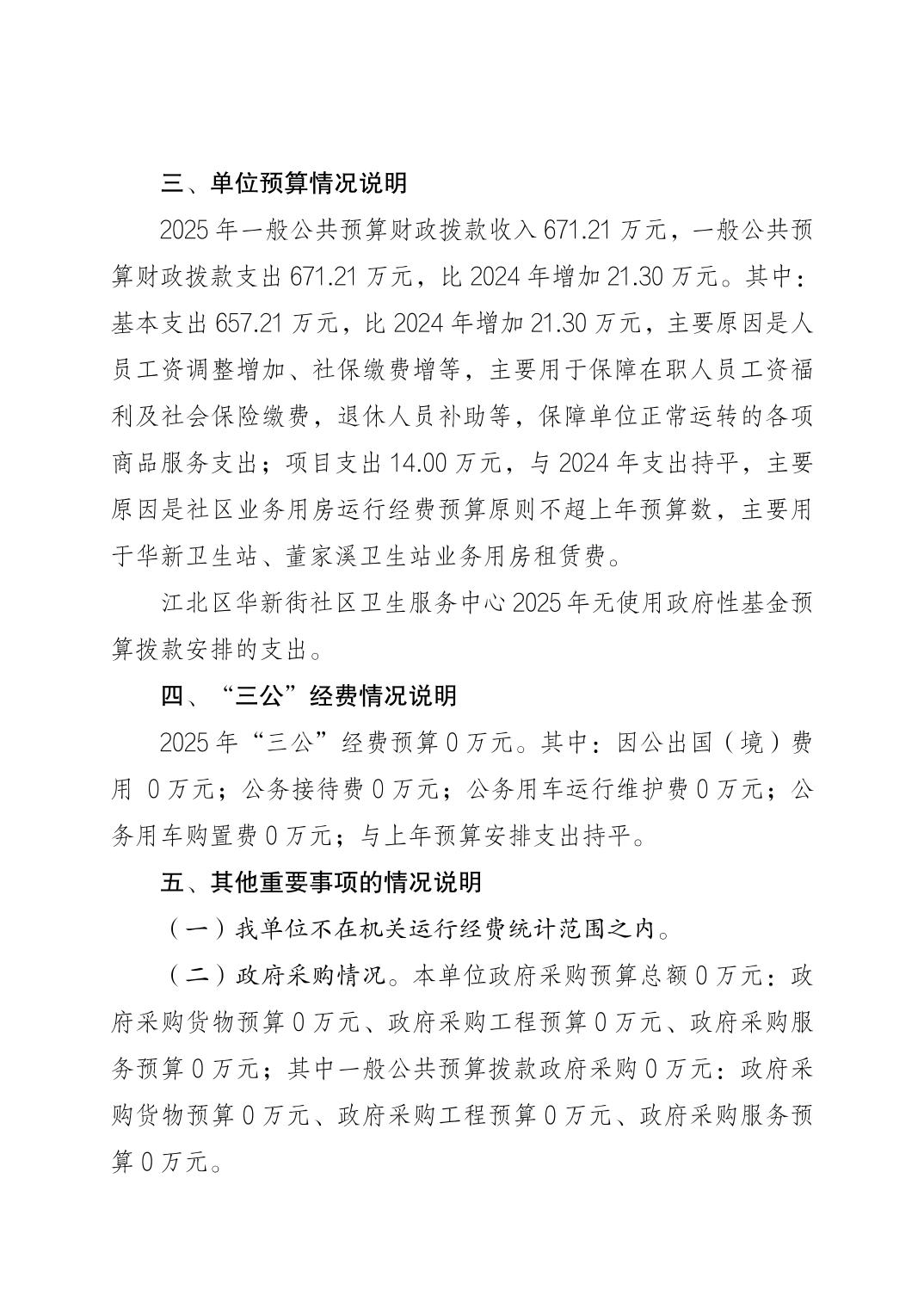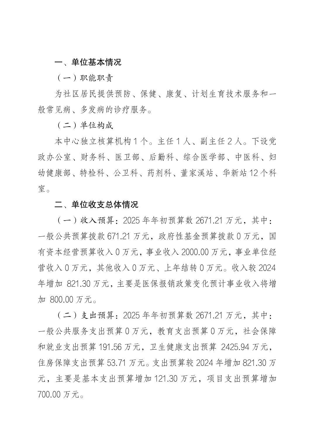 重慶市江北區(qū)華新街社區(qū)衛(wèi)生服務(wù)中心2025年單位預(yù)算情況說明