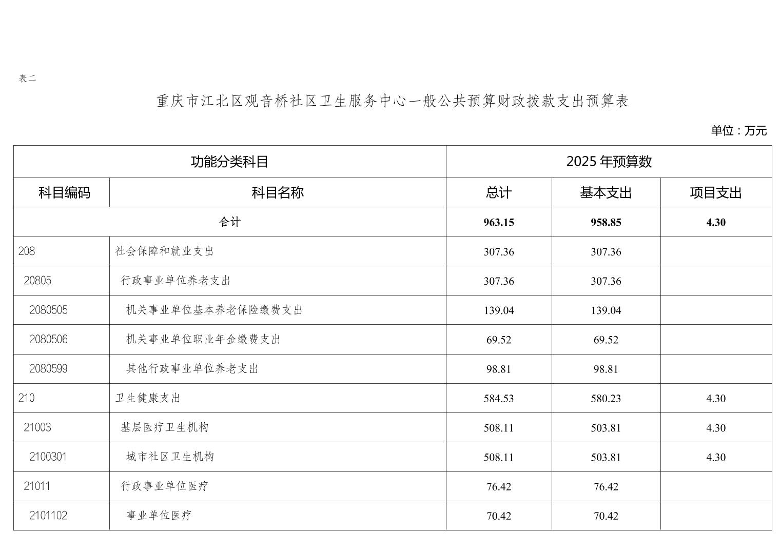 重慶市江北區觀音橋社區衛生服務中心2025年部門預算情況說明