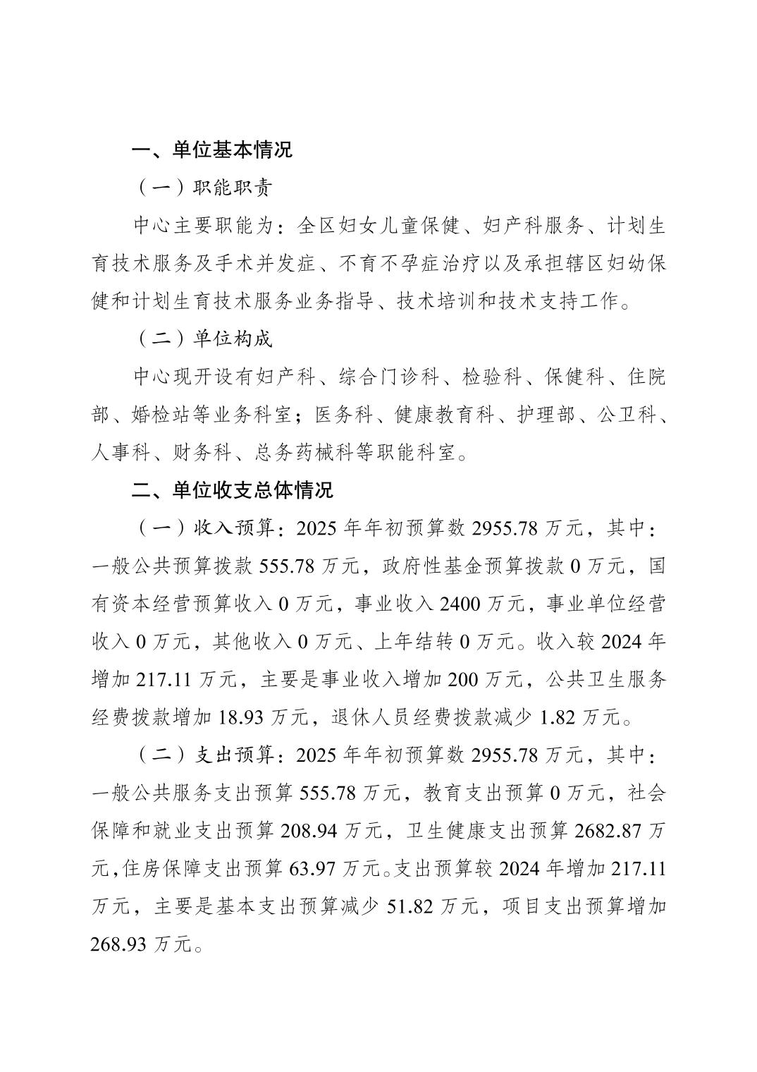 重慶市江北區婦幼保健計劃生育服務中心2025年單位預算情況說明