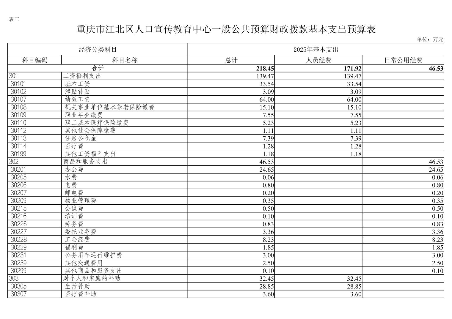 重慶市江北區人口宣傳教育中心2025年度單位預算情況說明