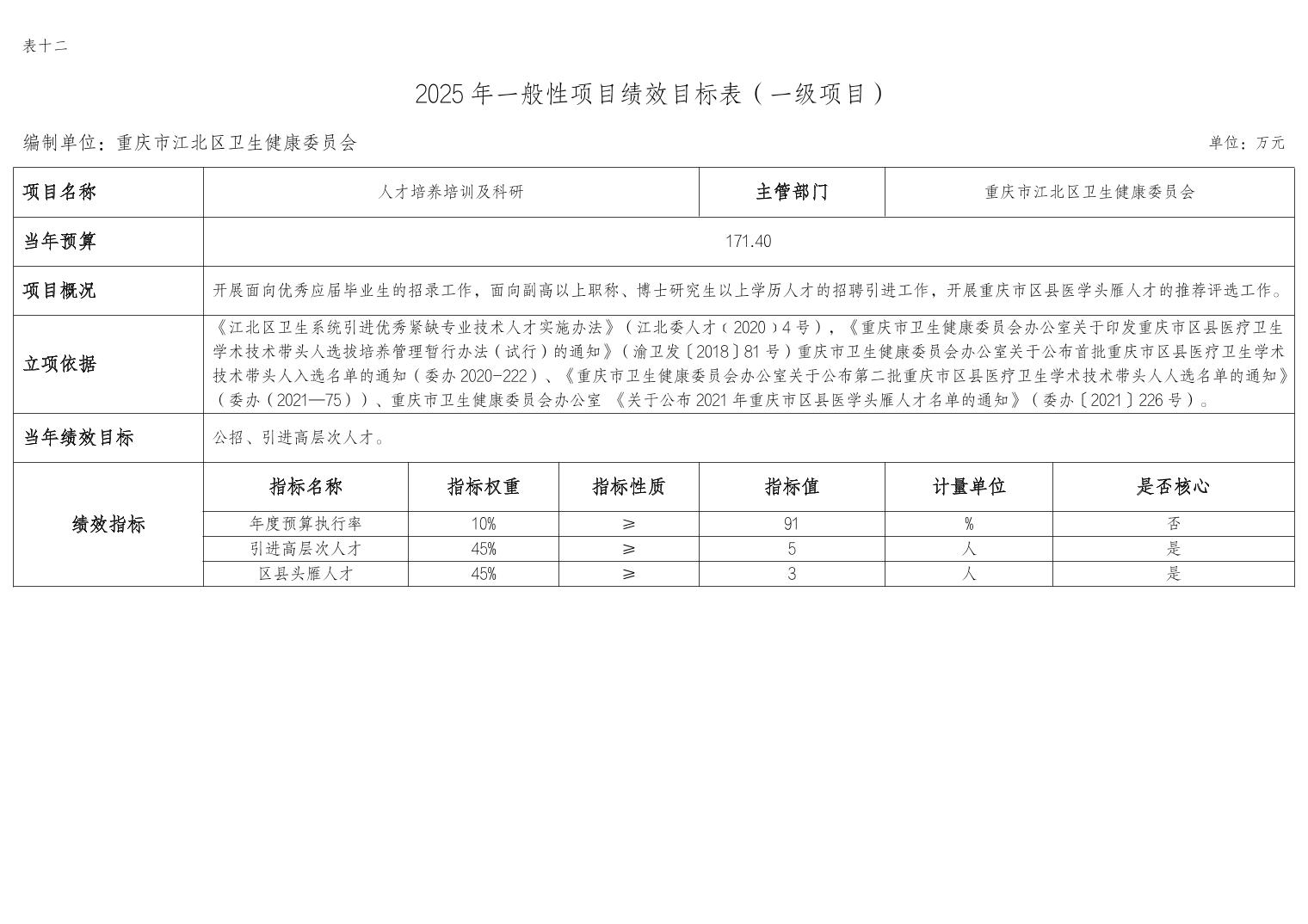 重慶市江北區衛生健康委員會2025年部門預算情況說明
