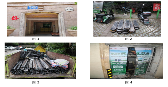 (1)道路邊堆積有拆除的對重塊、導(dǎo)軌、線纜(圖2、圖3);
