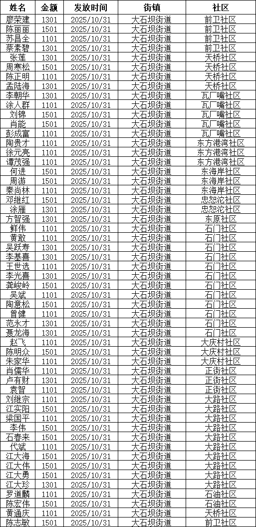 江北區大石壩街道2025年10月特困對象相關信息