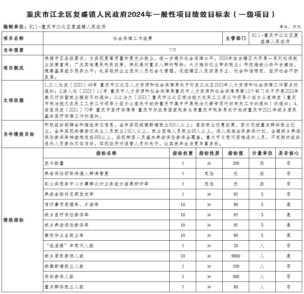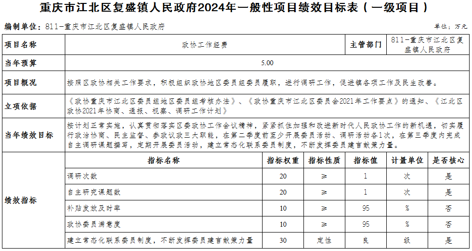 重慶市江北區復盛鎮人民政府 2024年部門預算情況說明
