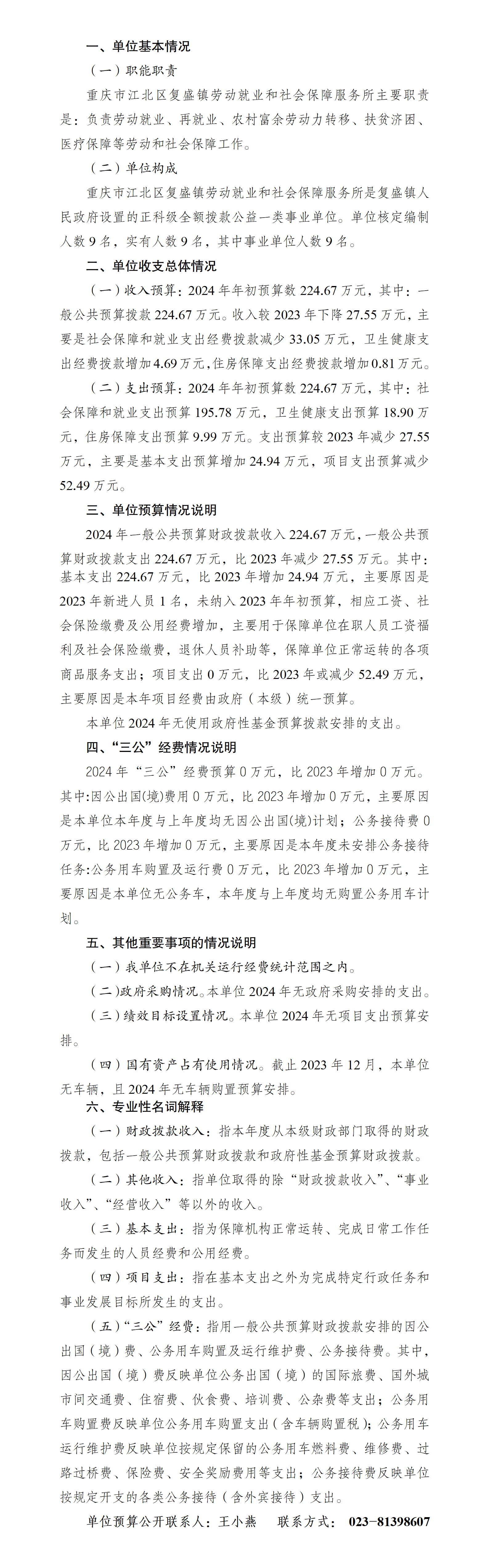 重慶市江北區復盛鎮勞動就業和社會保障服務所2024年單位預算情況說明