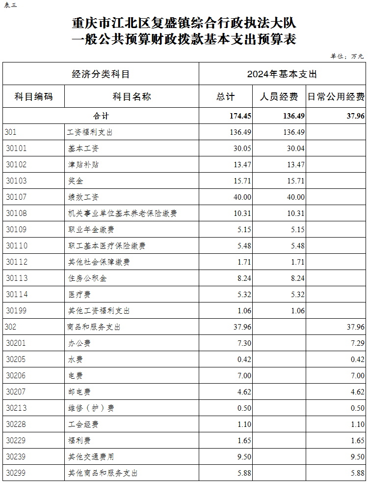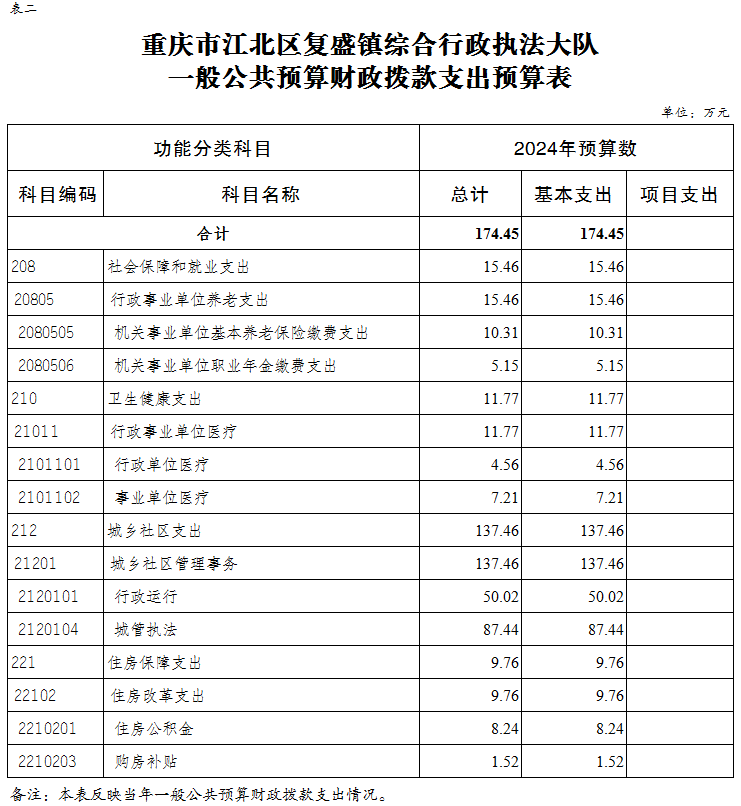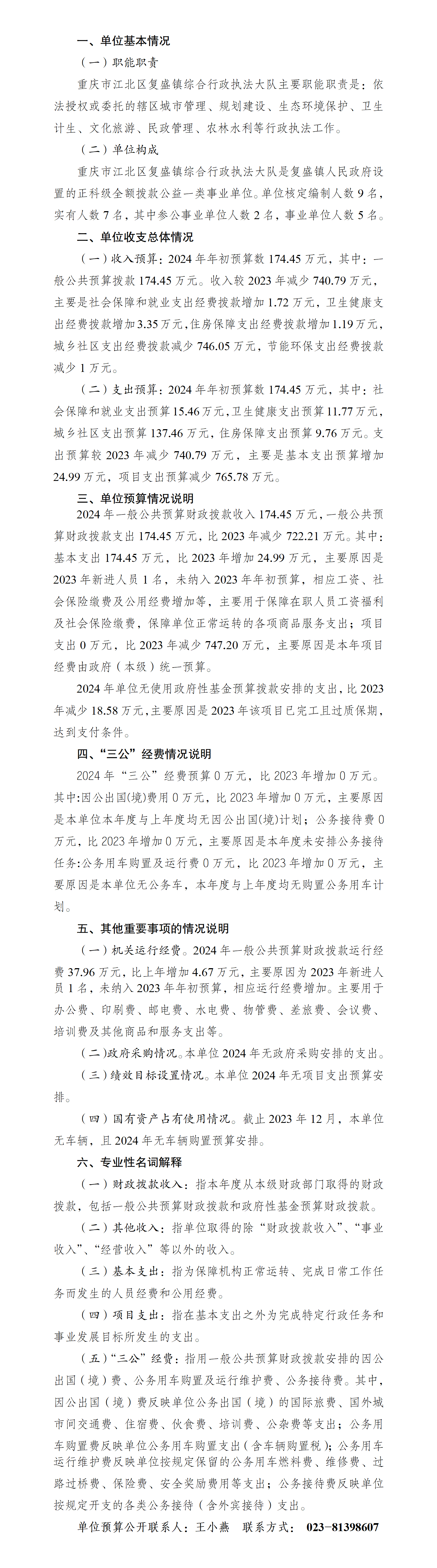 重慶市江北區復盛鎮綜合行政執法大隊 2024年單位預算情況說明