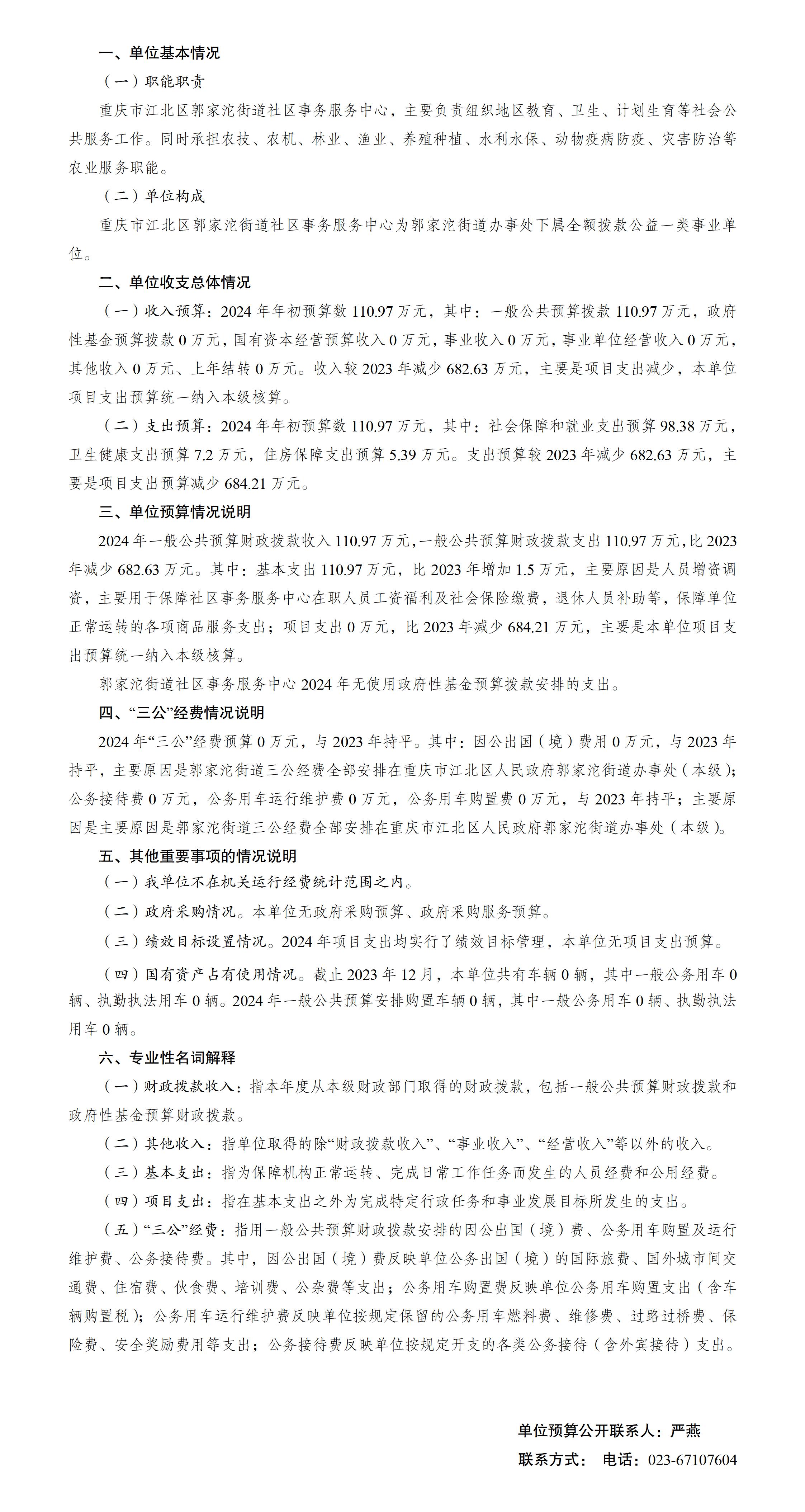 重慶市江北區(qū)郭家沱街道社區(qū)事務(wù)服務(wù)中心2024年單位預(yù)算情況說(shuō)明