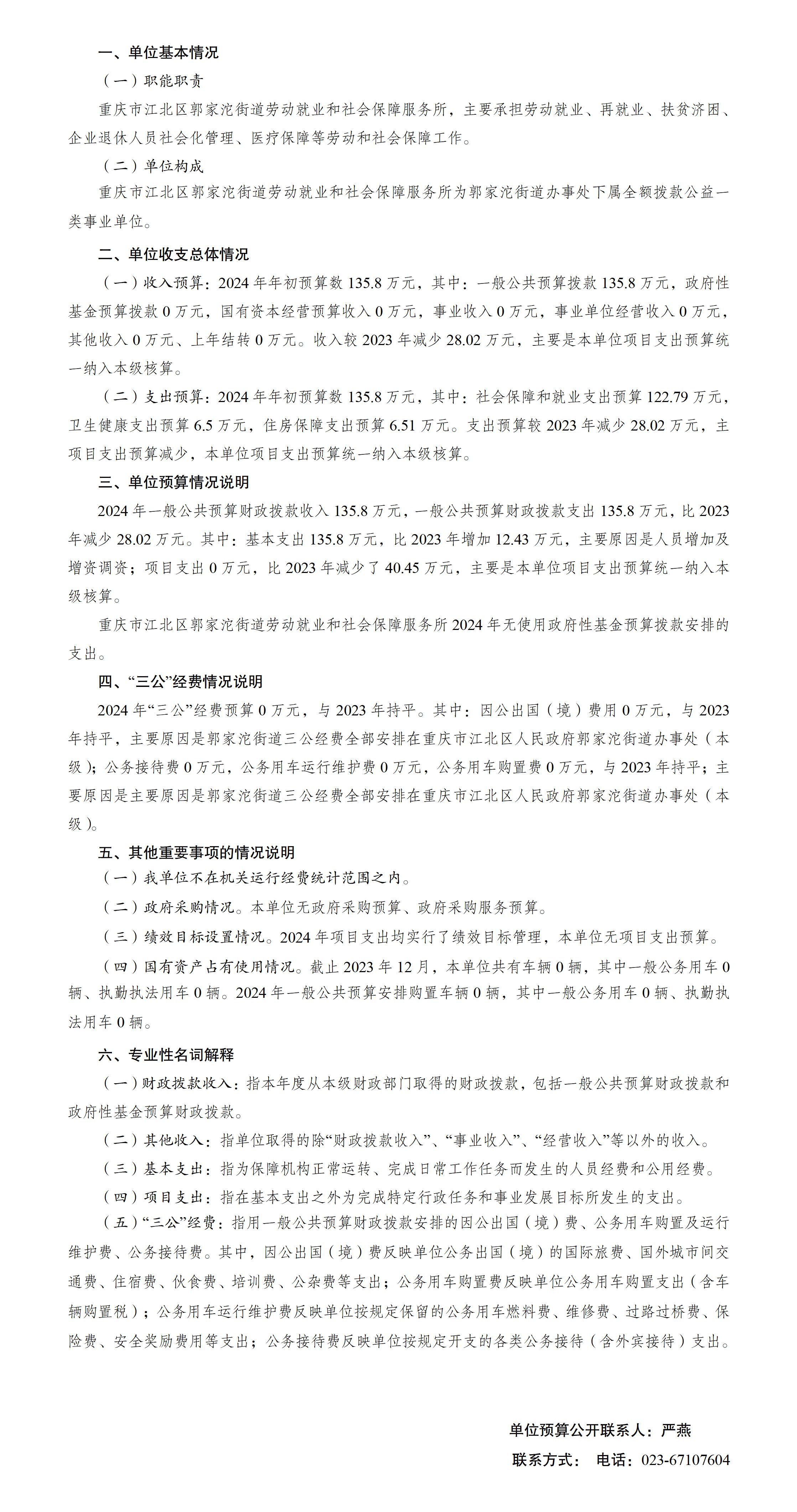 重慶市江北區(qū)郭家沱街道勞動(dòng)就業(yè)和社會(huì)保障服務(wù)所2024年單位預(yù)算情況說明