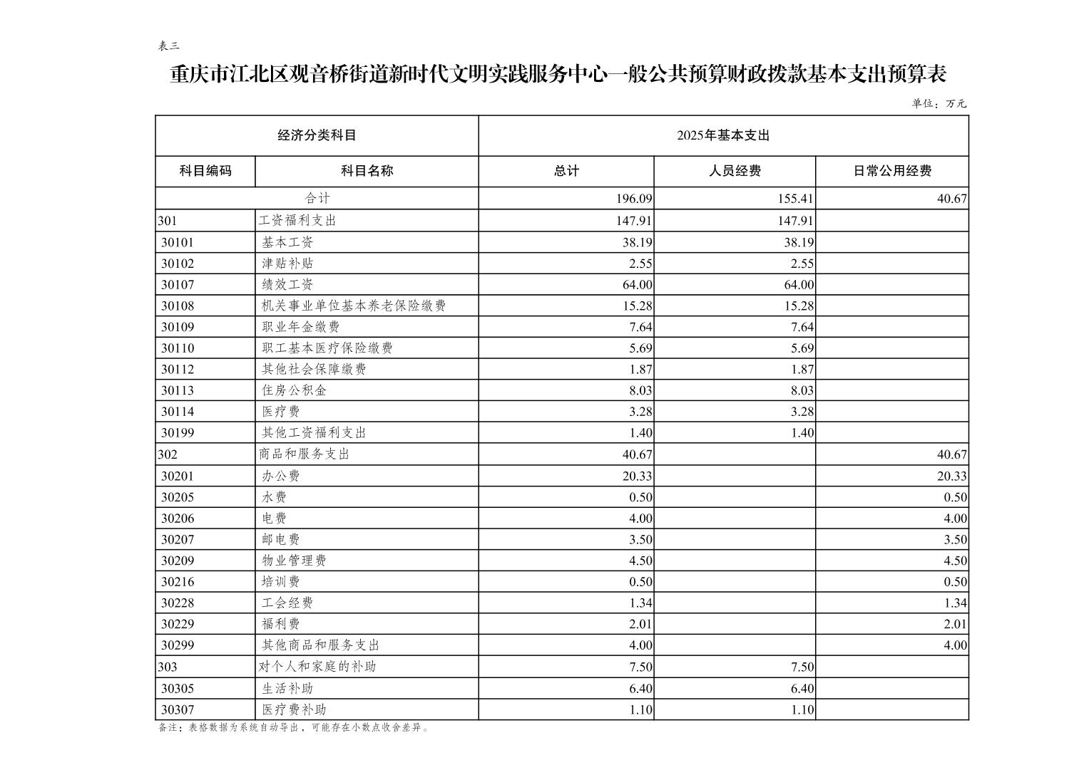 重慶市江北區觀音橋街道新時代文明實踐服務中心2025年單位預算情況說明