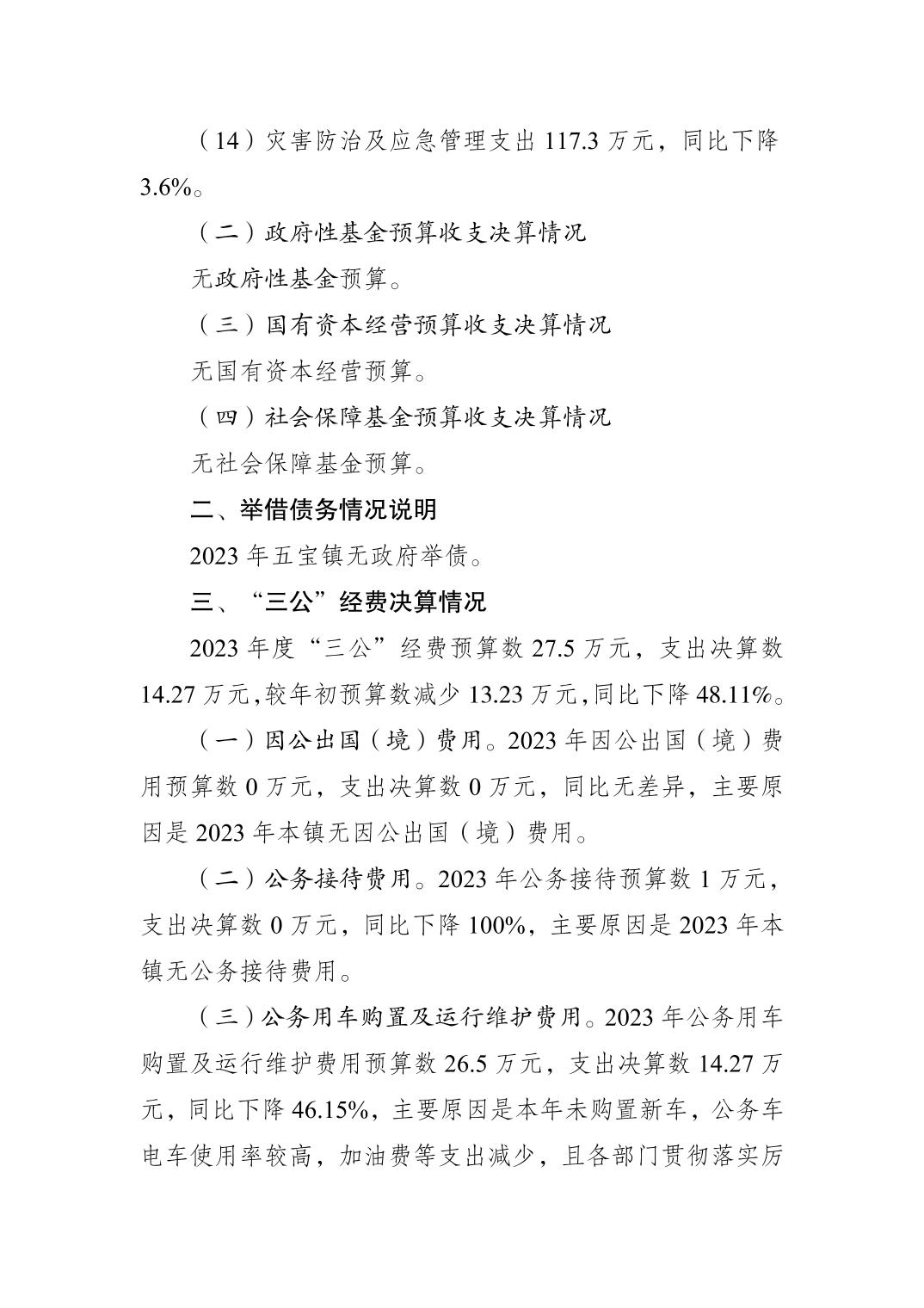 重慶市江北區(qū)五寶鎮(zhèn)人民政府2023年度政府決算情況說(shuō)明