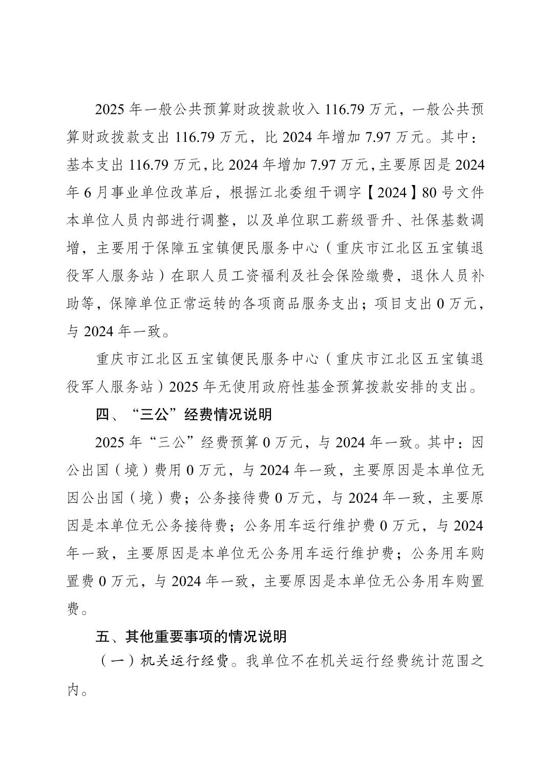 江北區(qū)五寶鎮(zhèn)便民服務(wù)中心(江北區(qū)五寶鎮(zhèn)退役軍人服務(wù)站)2025年單位預(yù)算情況說明