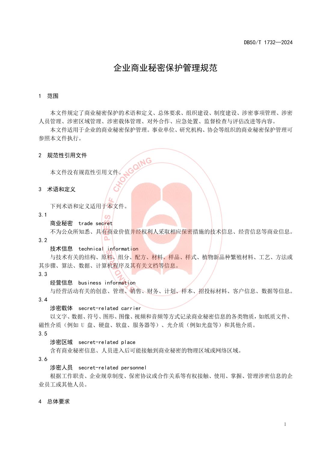重慶市市場監管局發布企業商業秘密保護管理規范